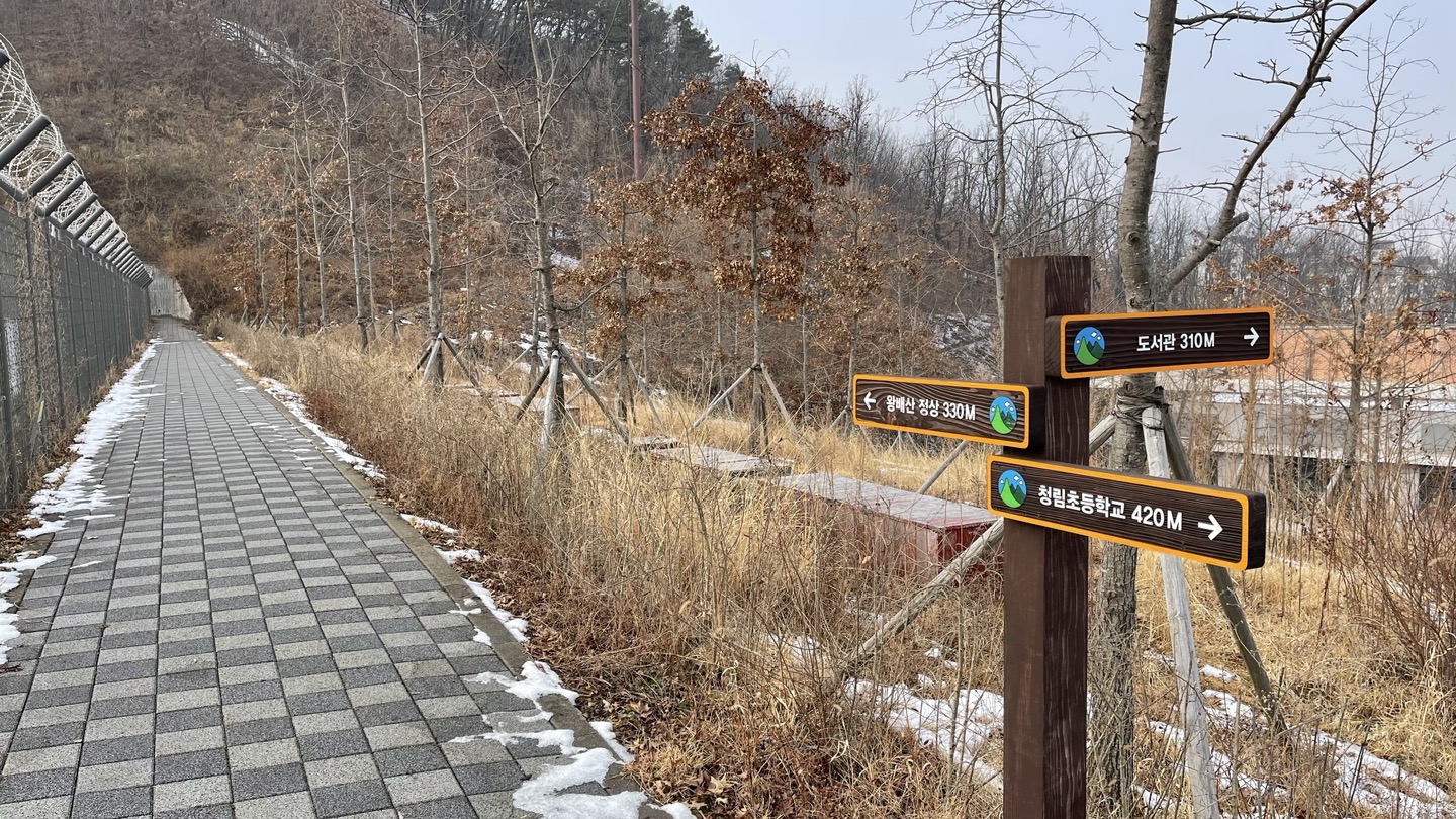 왕배푸른숲도서관 옆으로 왕배산으로 이어지는 산책로가 있습니다.