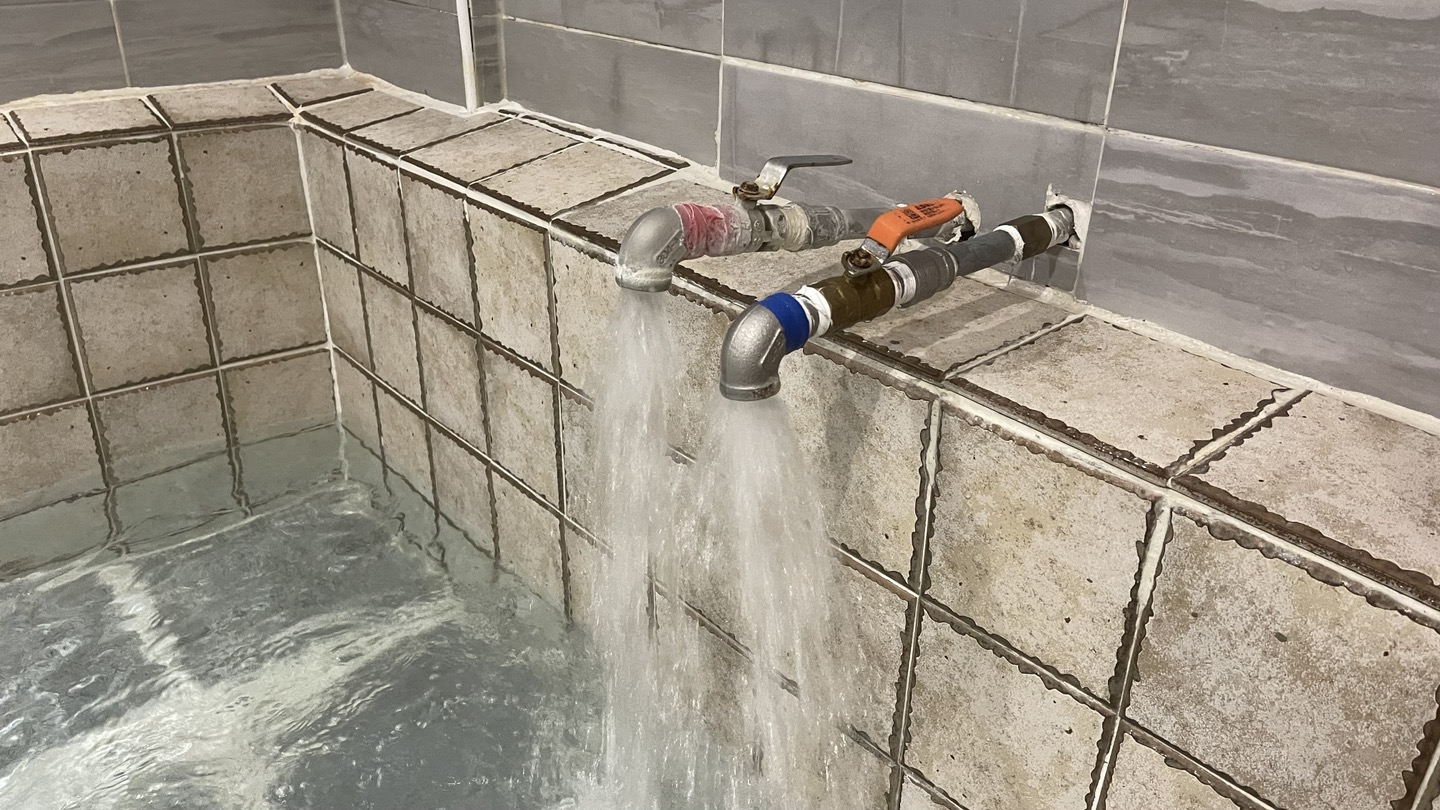 뜨거운 온천수를 채우니 더운 수증기로 인해 욕실 공기도 금새 후텁지근 해졌습니다.