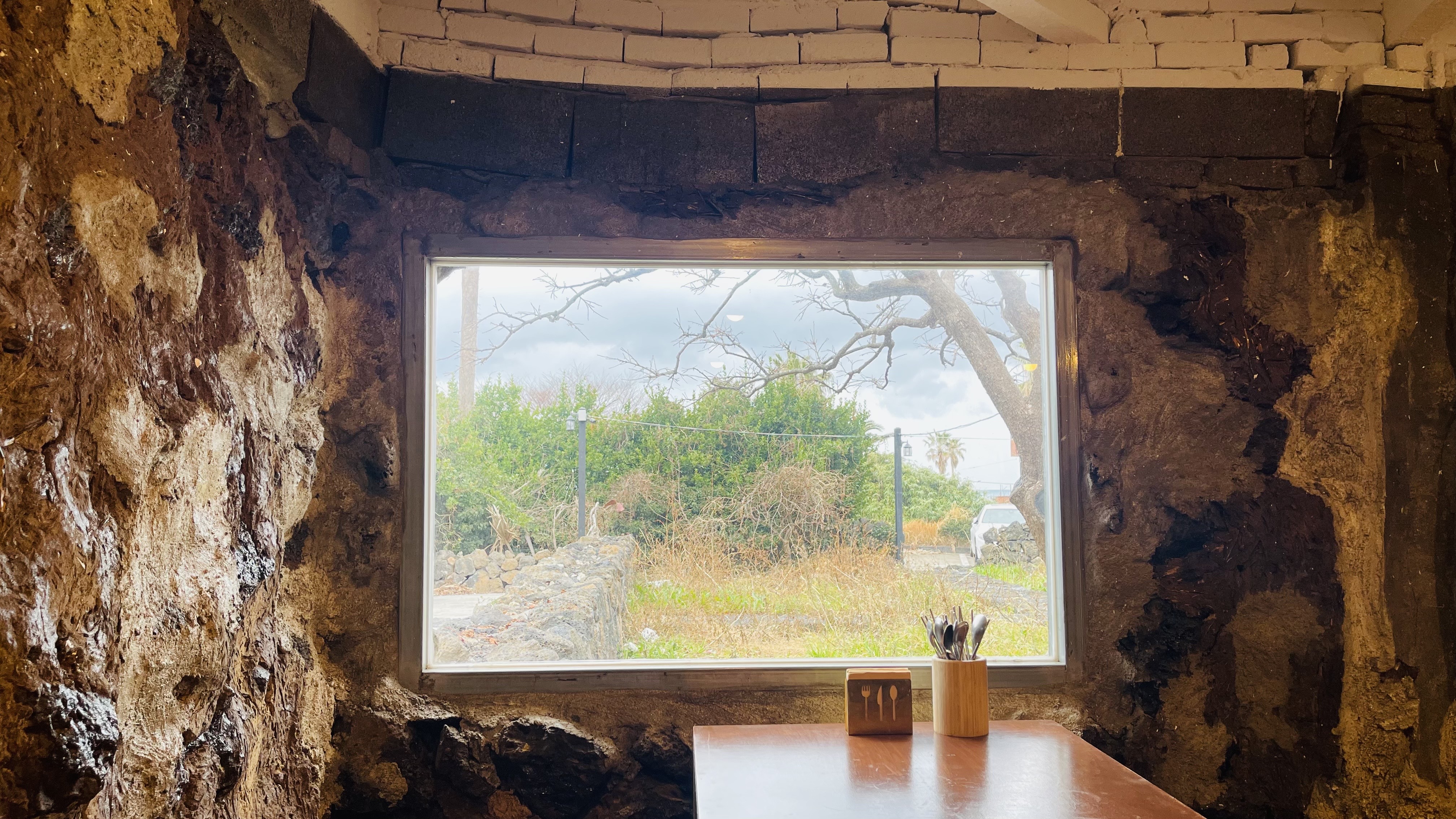 벽 한쪽에 나 있는 커다란 창을 통해 보이는 바깥 풍경이 내부 분위기를 더 풍성하게 해주는 느낌이에요. 마치 멋진 풍경화 액자가 걸려있는 것 같았어요.^^