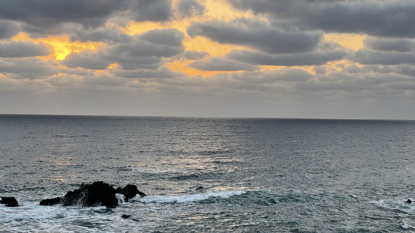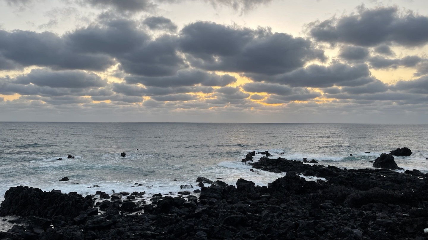 짙은 구름으로 아쉽게 일출을 볼 수는 없었지만, 구름과 파도거품이 데칼코마니처럼 펼쳐진 풍경 또한 일출 못지 않게 멋있었습니다.