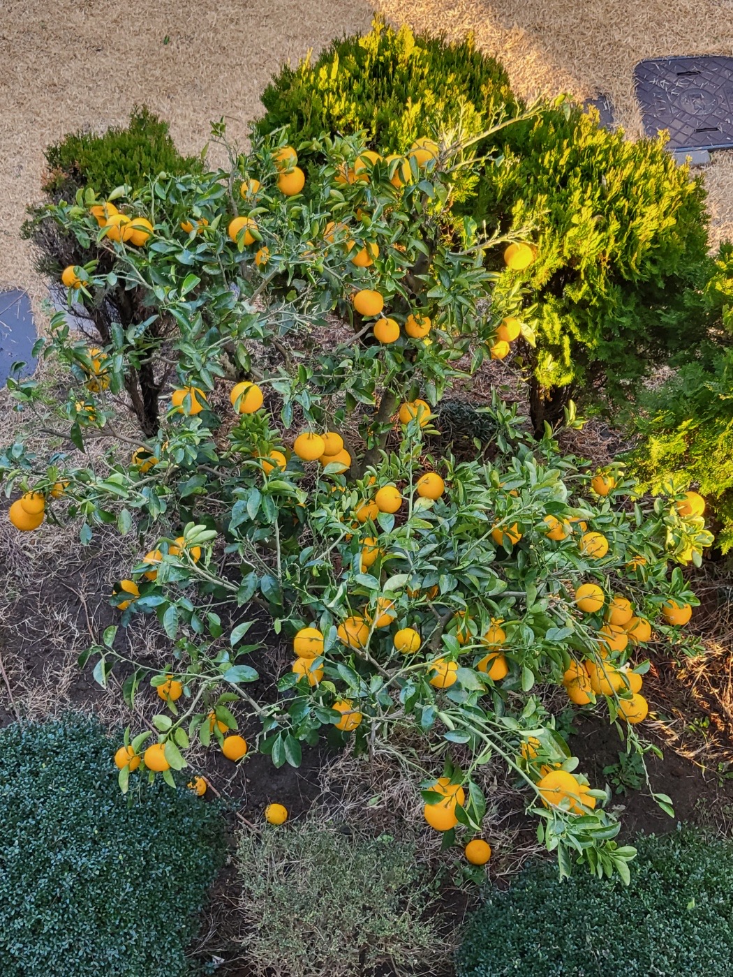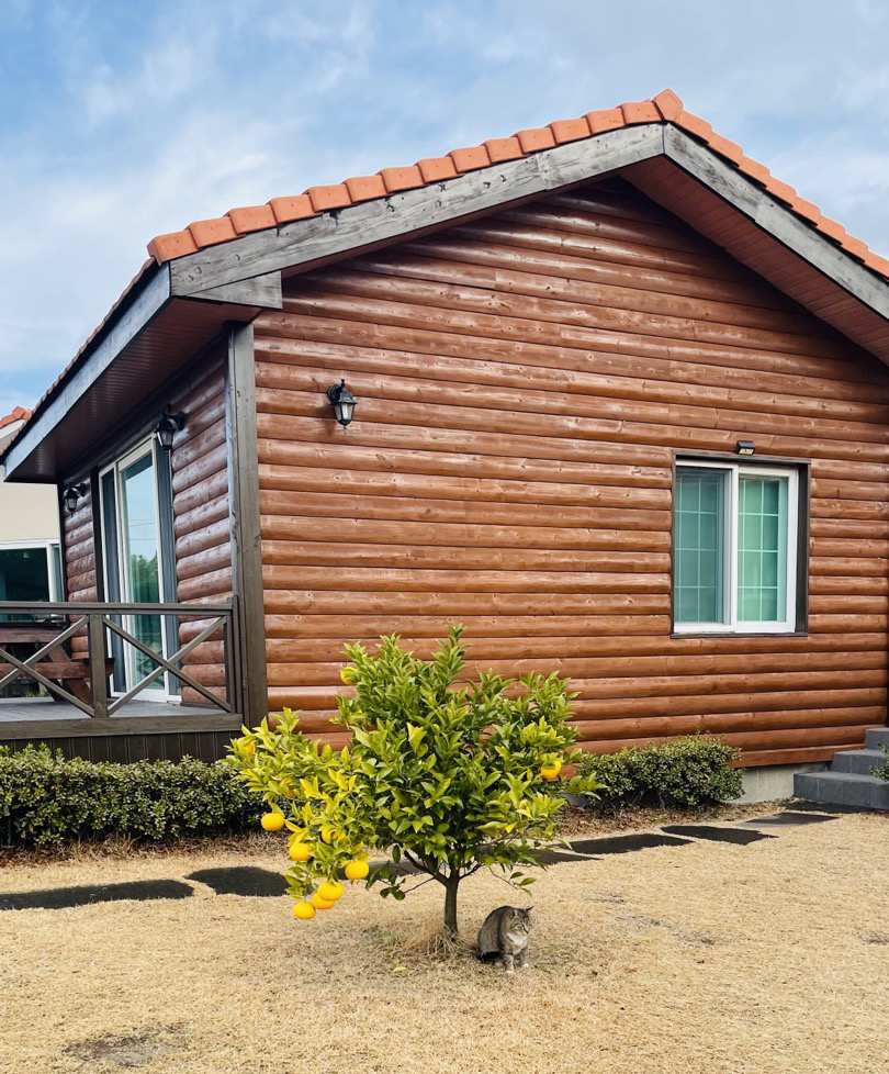 펜션 정원 곳곳에 과일나무가 심어져 있어요. 귤은 아닌것 같고, 황금향인지 레드향인지....