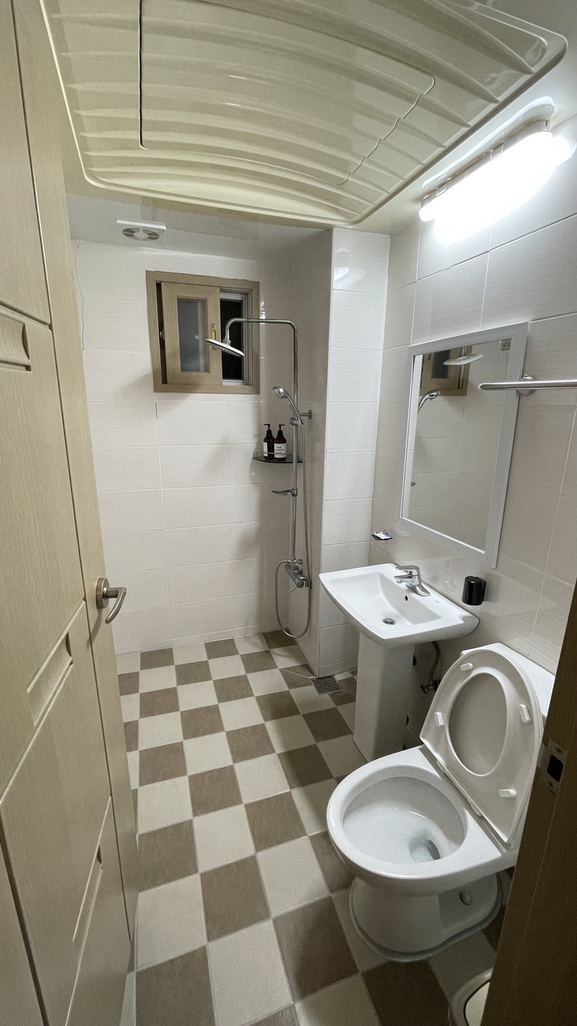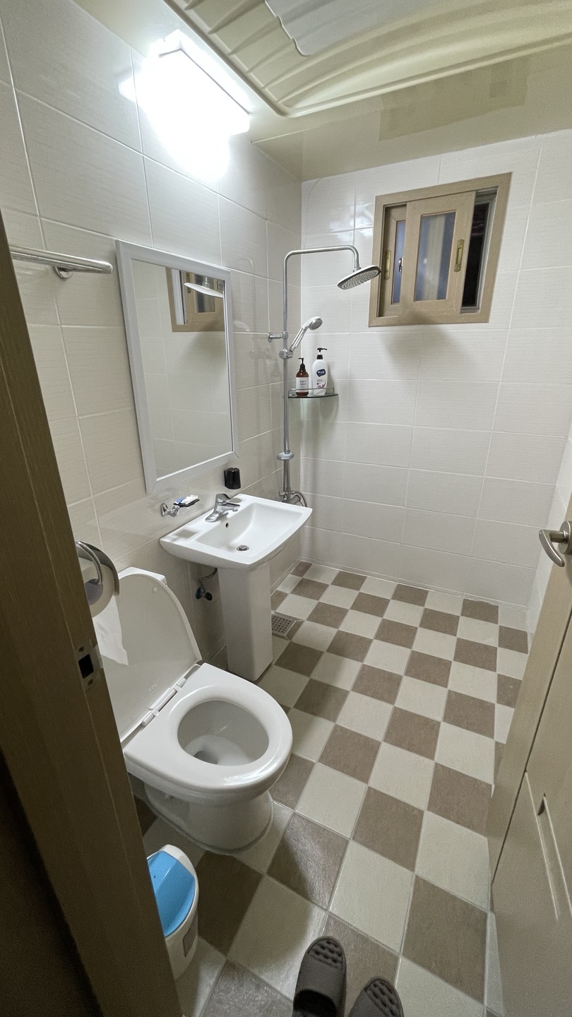 2층 화장실이에요. 1층 화장실과 같은 구조로, 추운것도 냉온수 조절이 안되는 것도 똑같아요^^;; (저희가 사용한 곳은 바닥 물빠짐이 안좋았어요ㅜㅜ)