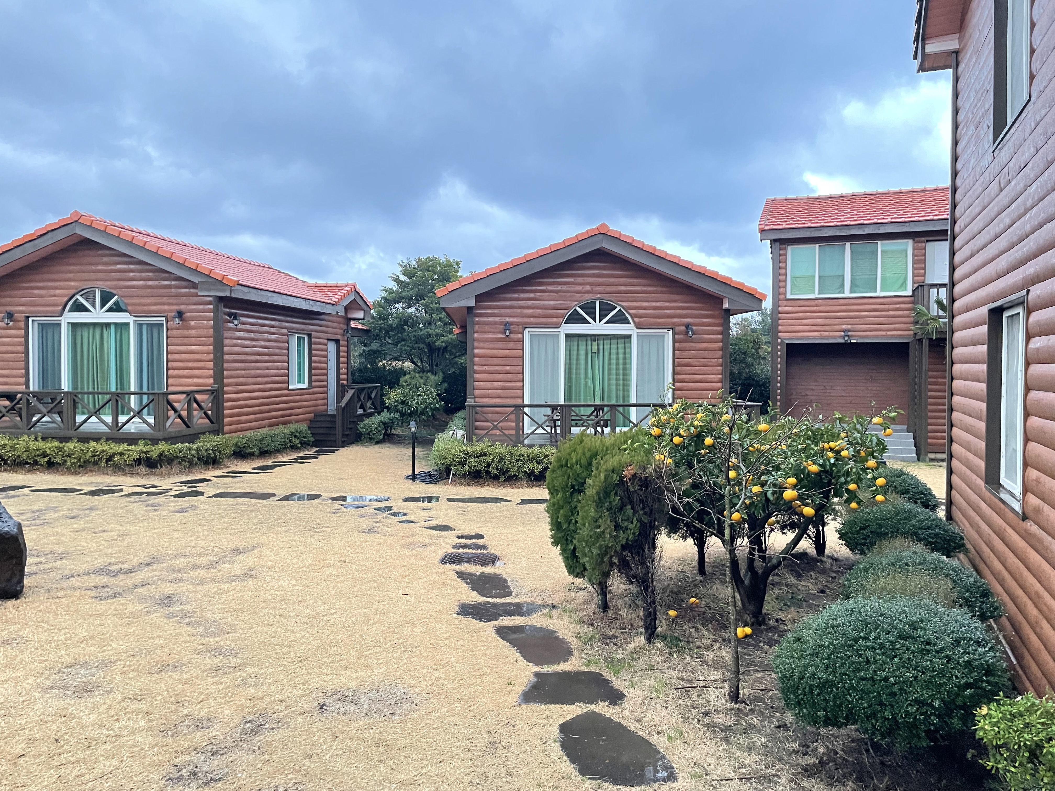 해마지펜션 숙소 모습입니다. 중앙에 정원이 있고 그 둘레로 숙소들이 배치되어 있는 구조에요.