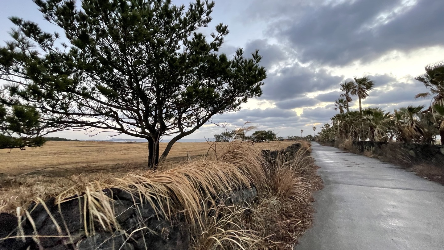 숙소에서 10~15분쯤 걸어나오니 바다가 보입니다. 제주올레길3코스가 지나가는 길이에요.