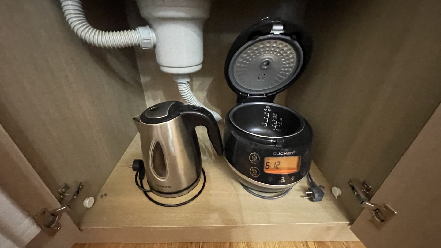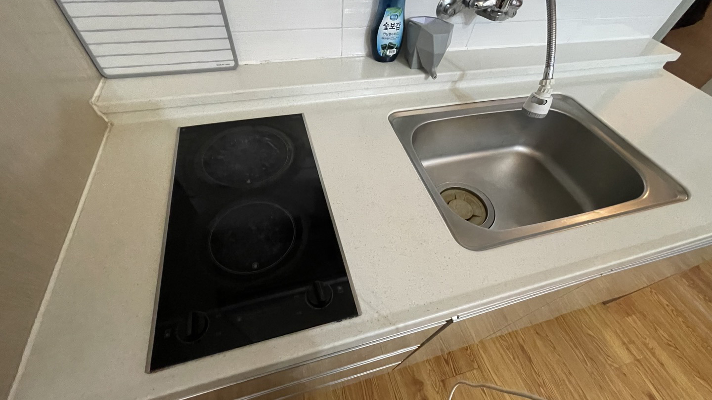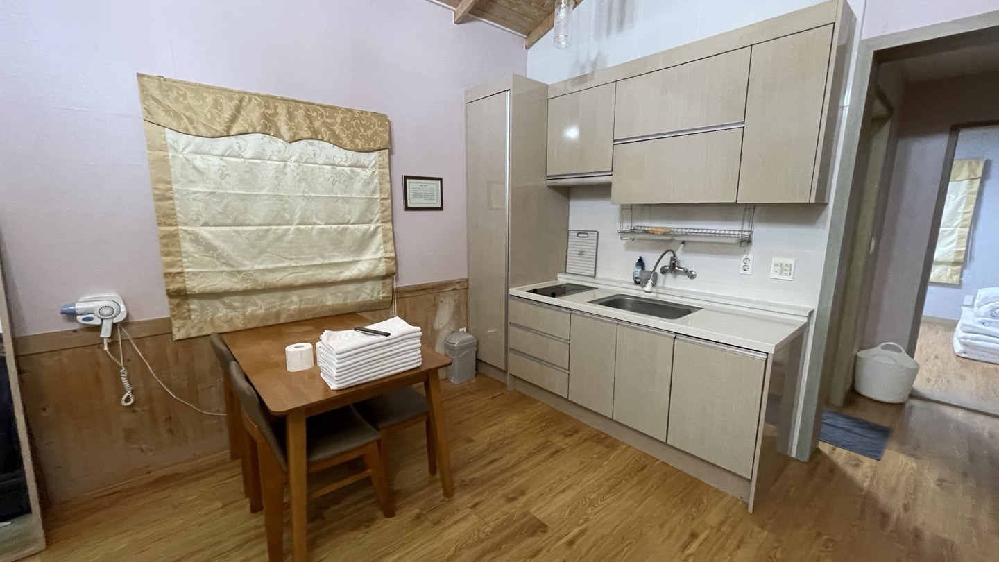 주방안에는 기본적인 식기류, 수저, 컵, 냄비, 밥통, 전기주전자, 후라이팬 등등 준비되어 있습니다.