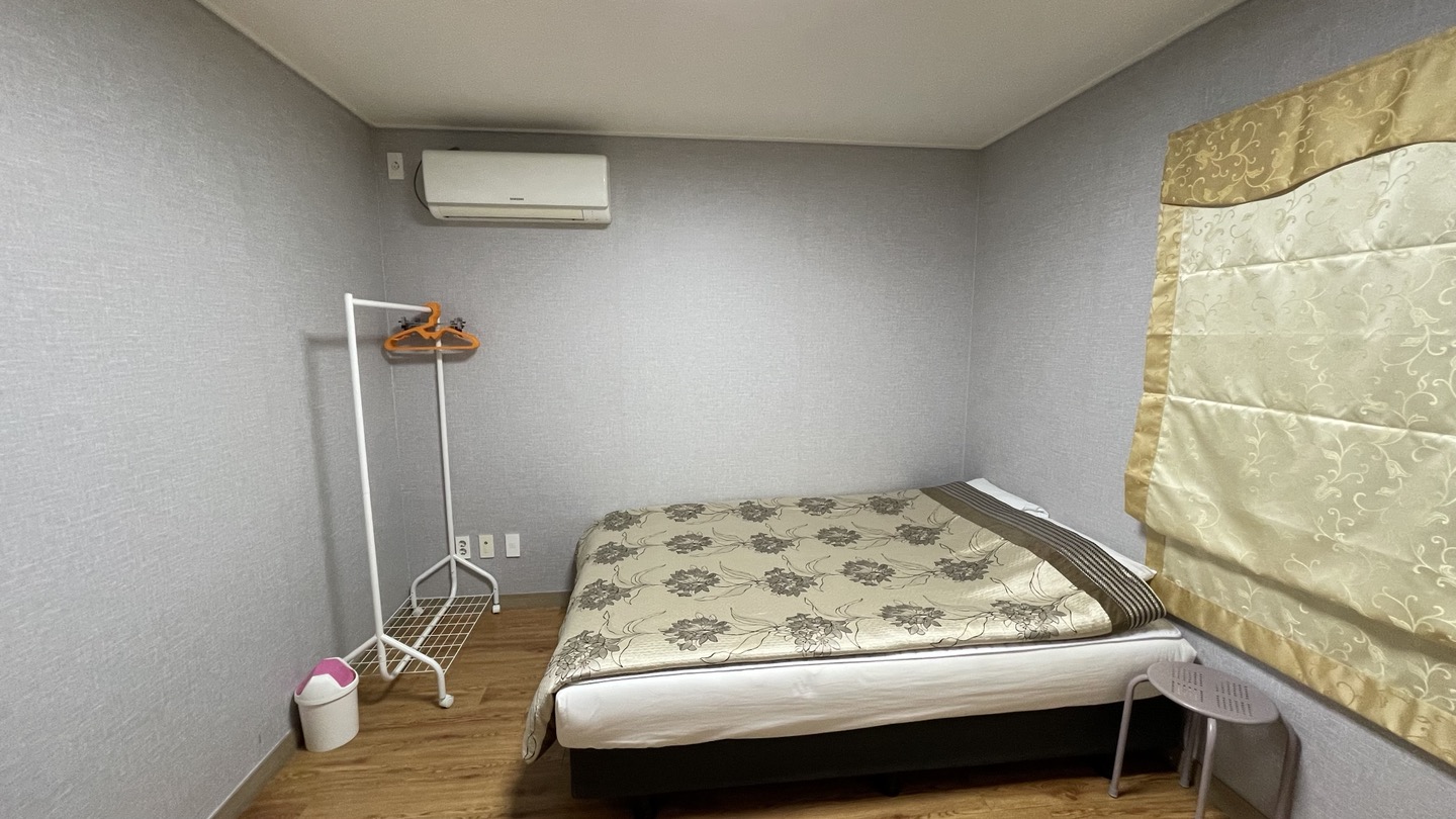 1층 방입니다. 침대, 옷걸이, 에어컨 등 있습니다. 인원수에 맞게 여분의 이불이 제공됩니다.