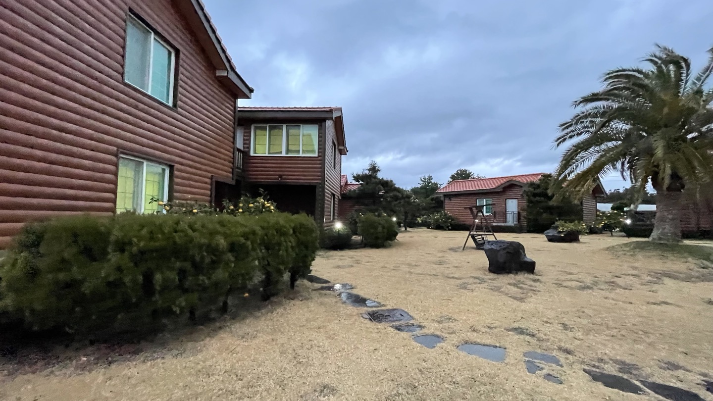 해마지펜션 숙소 모습입니다. 중앙에 정원이 있고 그 둘레로 숙소들이 배치되어 있는 구조에요.