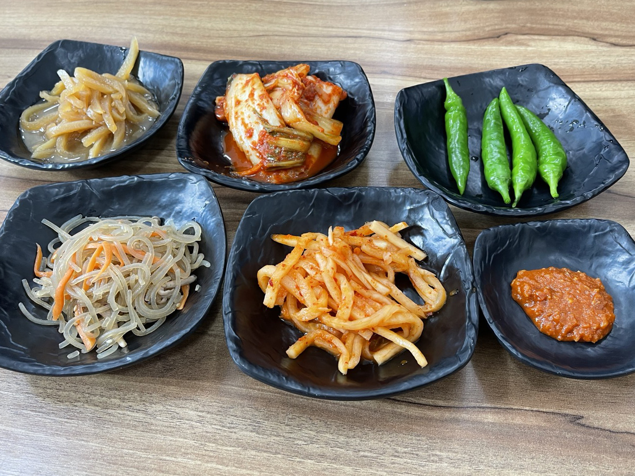 기본 반찬은 요렇게 나오는데, 밑반찬이 특별히 맛있지는 않아요.