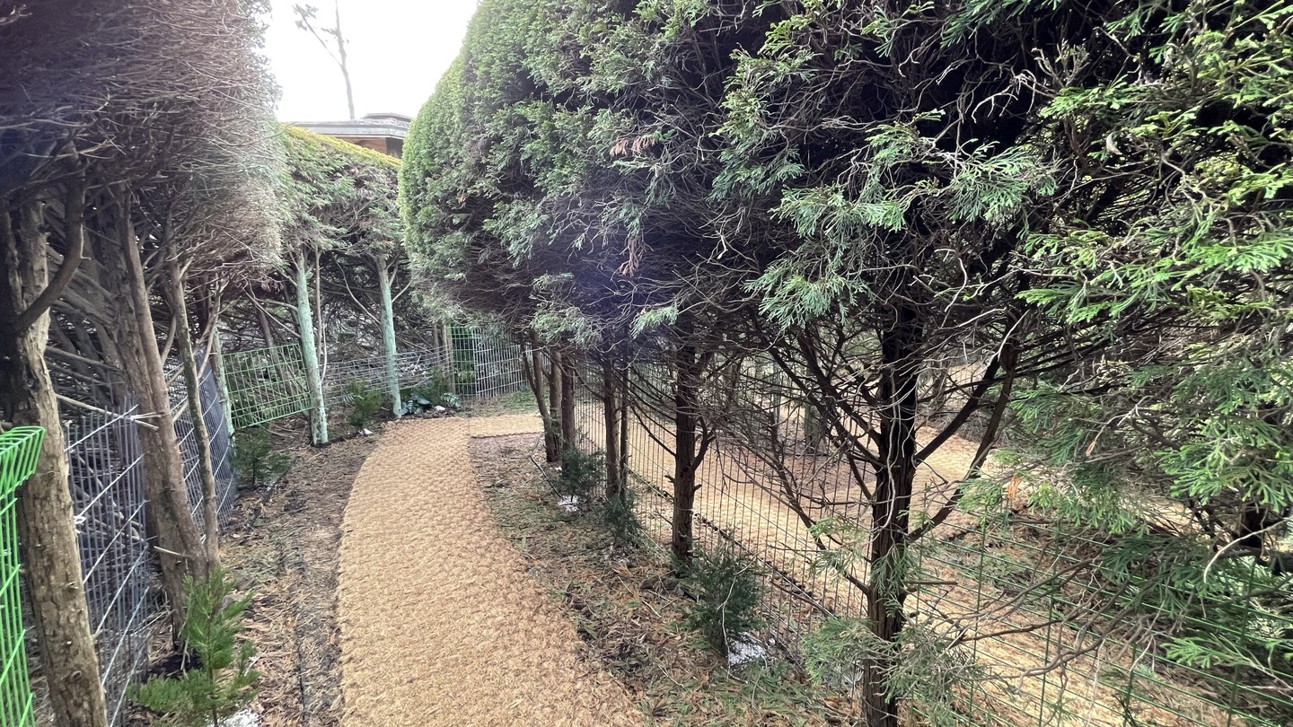 나뭇잎이 위쪽 시선만 가리게 되어 있어서, 아래쪽을 통해 다른 사람들의 움직임을 볼 수 있습니다. 아래쪽까지 모두 가려져 있으면 아이들은 좀 무서울 수도 있겠어요.