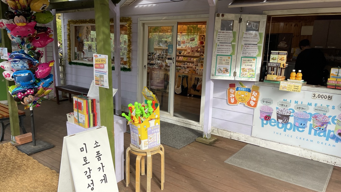 소품가게입니다. 기념품 외에 커피, 주스, 아이스크림, 과자 등 간식거리도 같이 팔고 있어요.