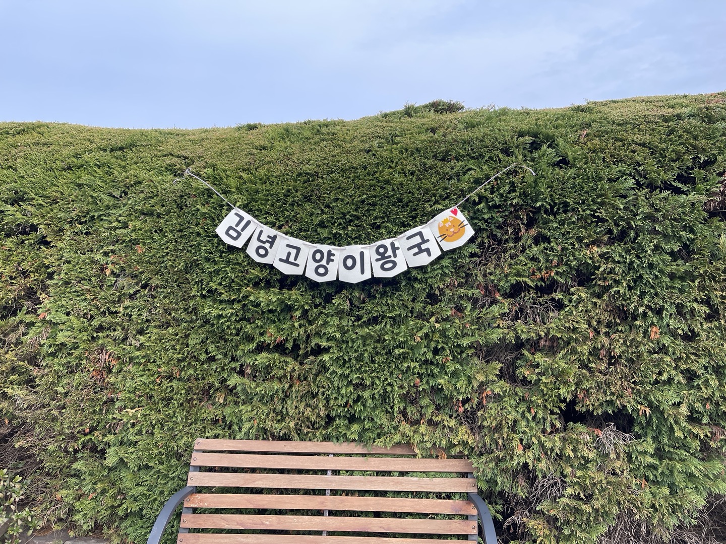 고양이왕국 비밀정원이에요. 나무들이 얼굴 모양을 하고 있네요. 고양이동상을 감시하는 토피어리 나무병정들이래요.ㅎㅎ