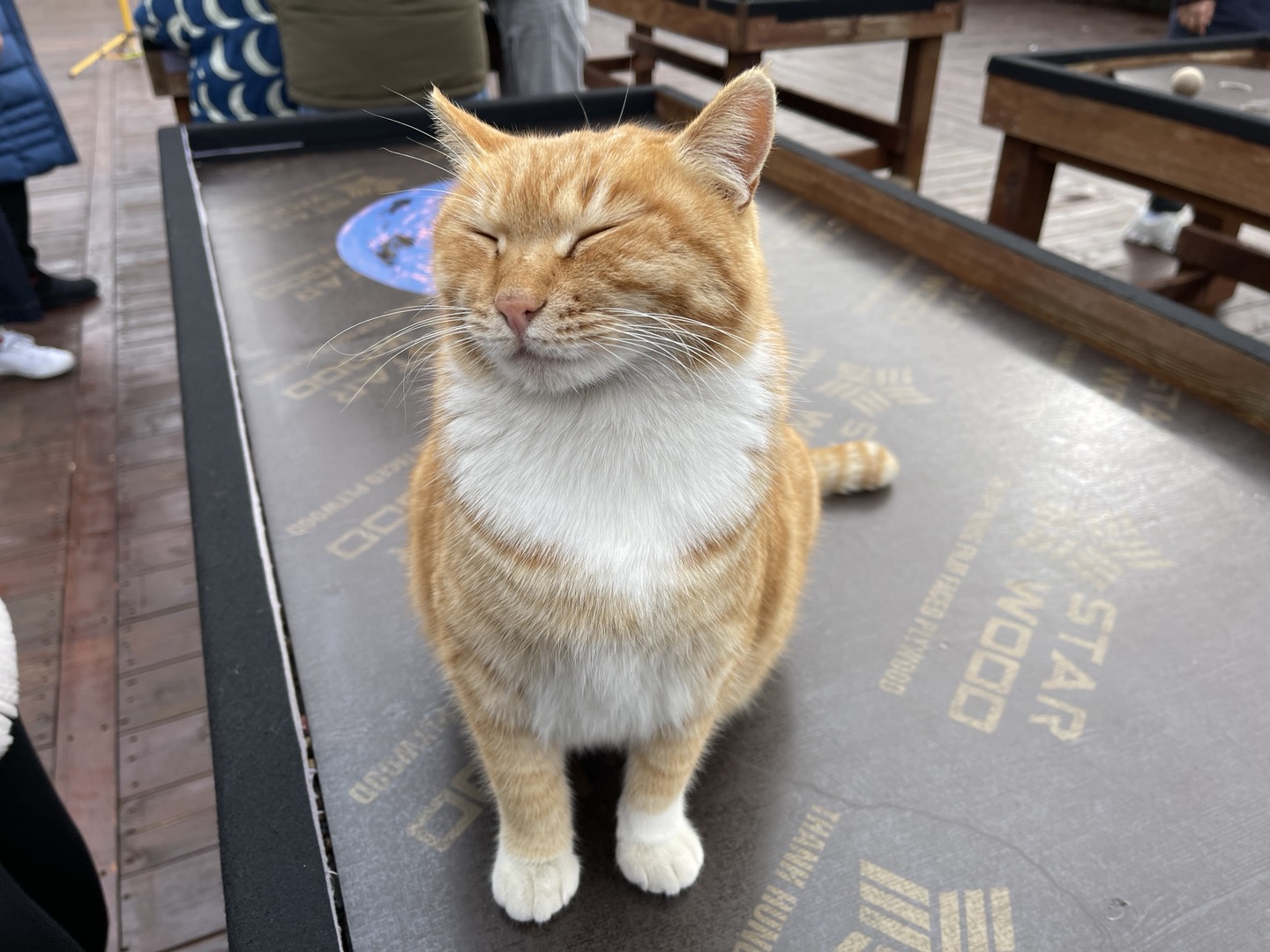 테이블게임대 위에도 고양이들이 천연덕스럽게 앉아 구름사이로 비집고 나오는 햇살을 즐기고 있었습니다.