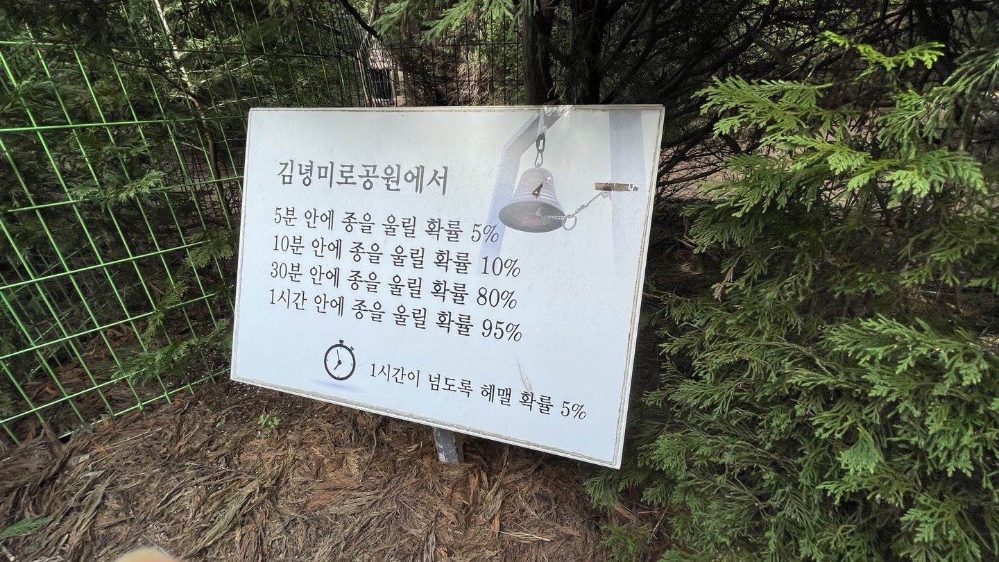 김녕미로공원에서 5분 안에 종을 울릴 확률 5%, 1시간이 넘도록 헤맬 확률 5%.