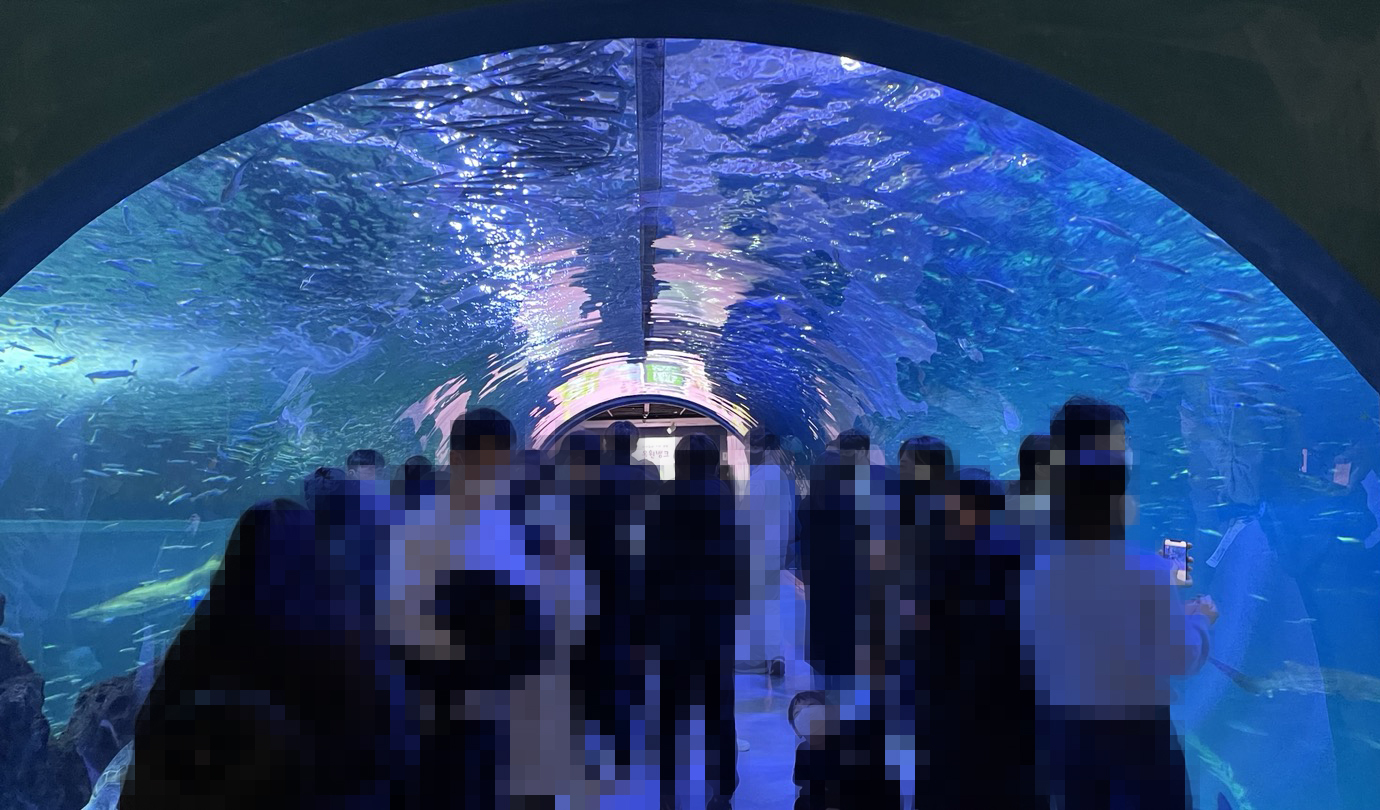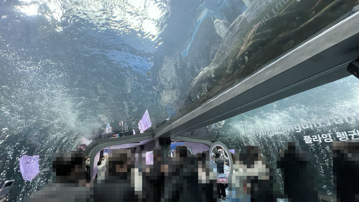 물 속을 걷는 듯한 기분을 느낄 수 있는 곳인데요...아쉽게도 물속 터널을 지나간다는 느낌보다는 사람터널을 헤집고 지나간다는 느낌이 더 많았어요. 역시 이런 곳은 사람 없을 때 와야...;;