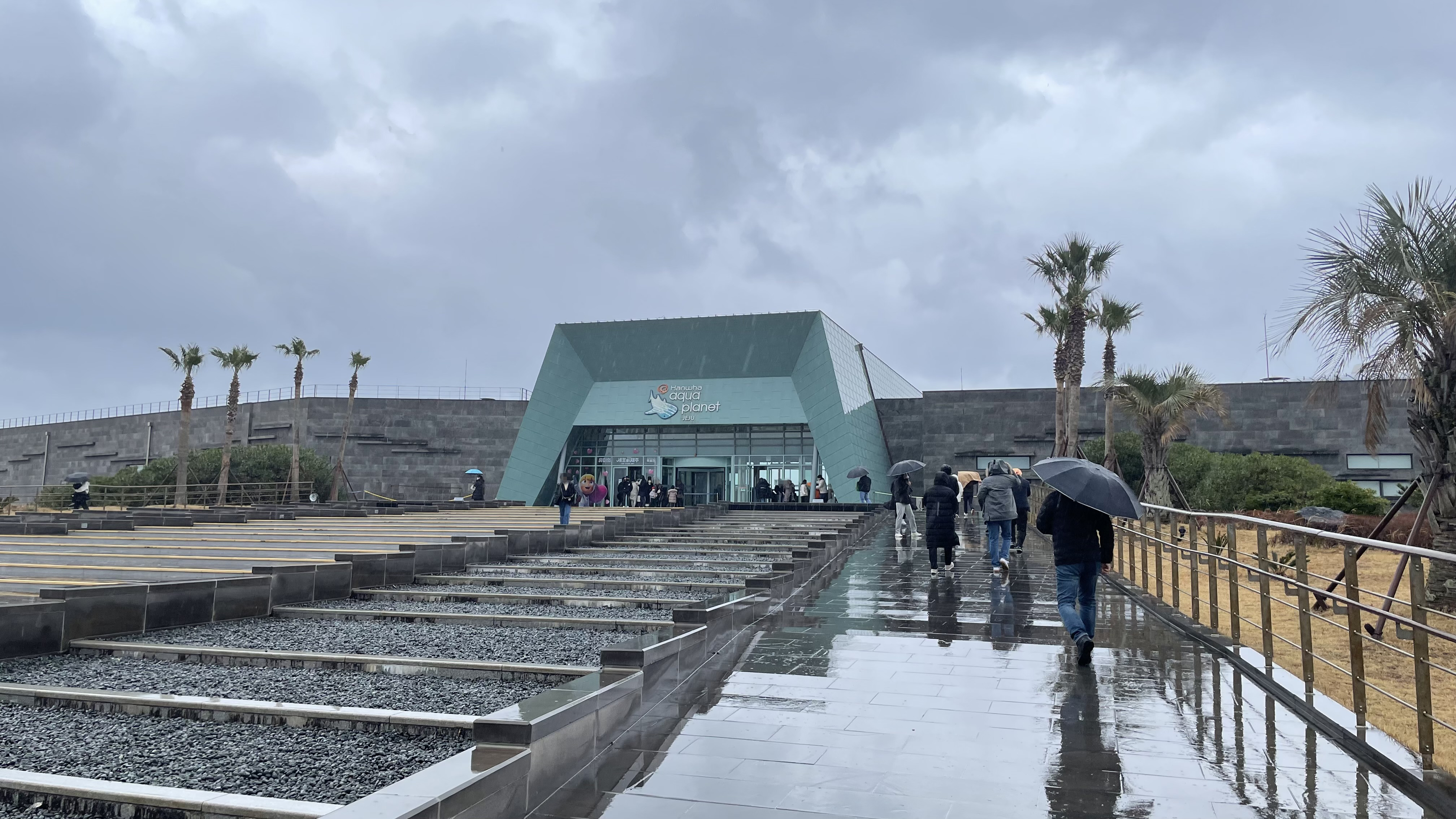 비바람이 몰아쳐서 주차장에서 아쿠아플라넷 입구까지 걸어가는 것조차 녹록치 않았어요. 제주도의 바람을 체감할 수 있었습니다.