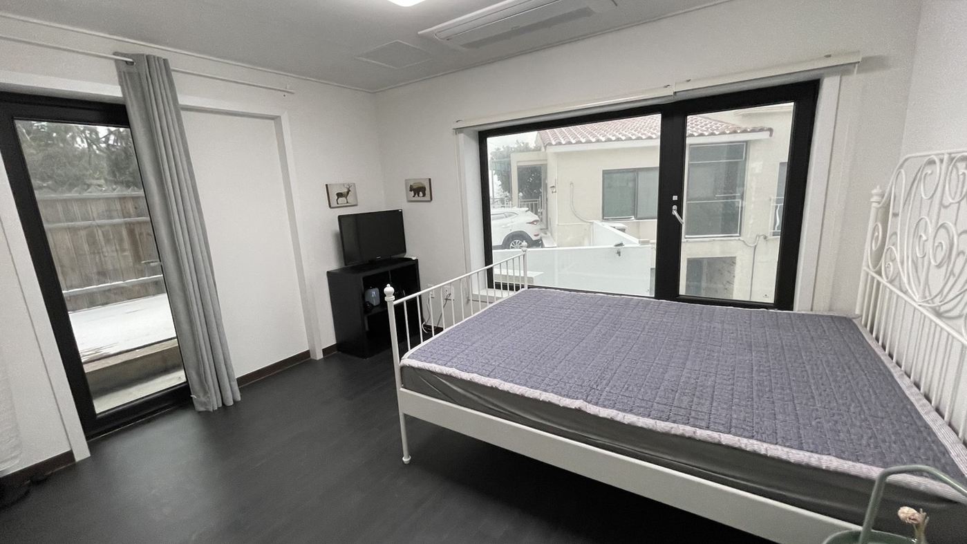 1층에 있는 거실 겸 침실입니다. 통창이 있어 마당이 한눈에 보입니다.