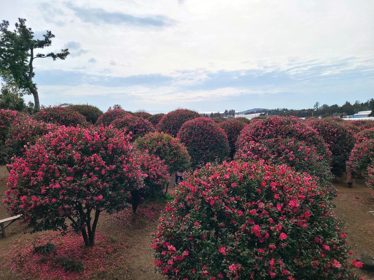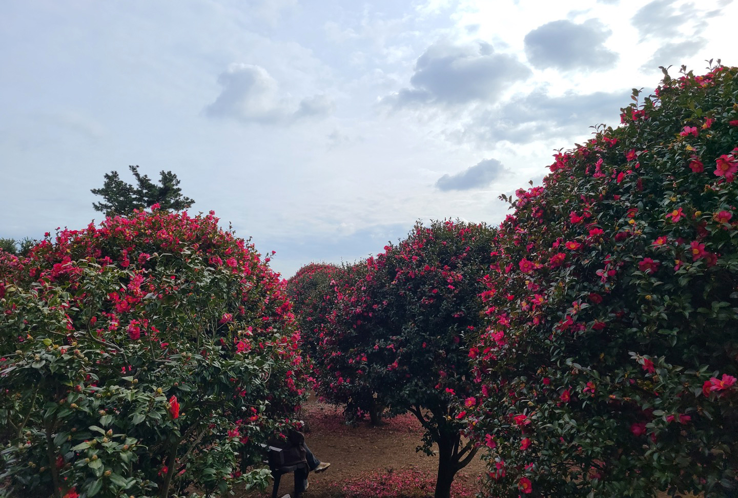 제주동백수목원에서는 수령 45년 이상된 우리나라에서 가장 큰 애기동백나무숲을 볼 수 있는데요, 동백꽃 뿐만 아니라 둥근 수형으로 가꾼 애기동백나무들이 모양이 어우러져 독특하고 아름다운 풍경을 만들고 있습니다.