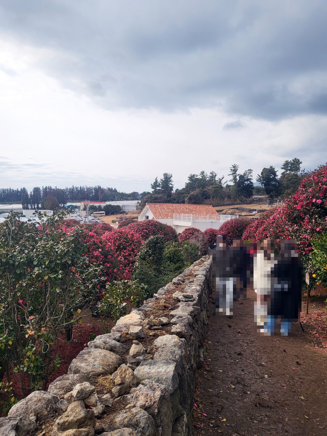 제주도 서귀포 남원읍에 있는 '위미동백군락지'는 1878년도에 현맹춘 할머님이 한라산에 있는 동백씨앗을 가져와 돌담따라 심어서 지금은 울창한 숲을 이룬 곳입니다.