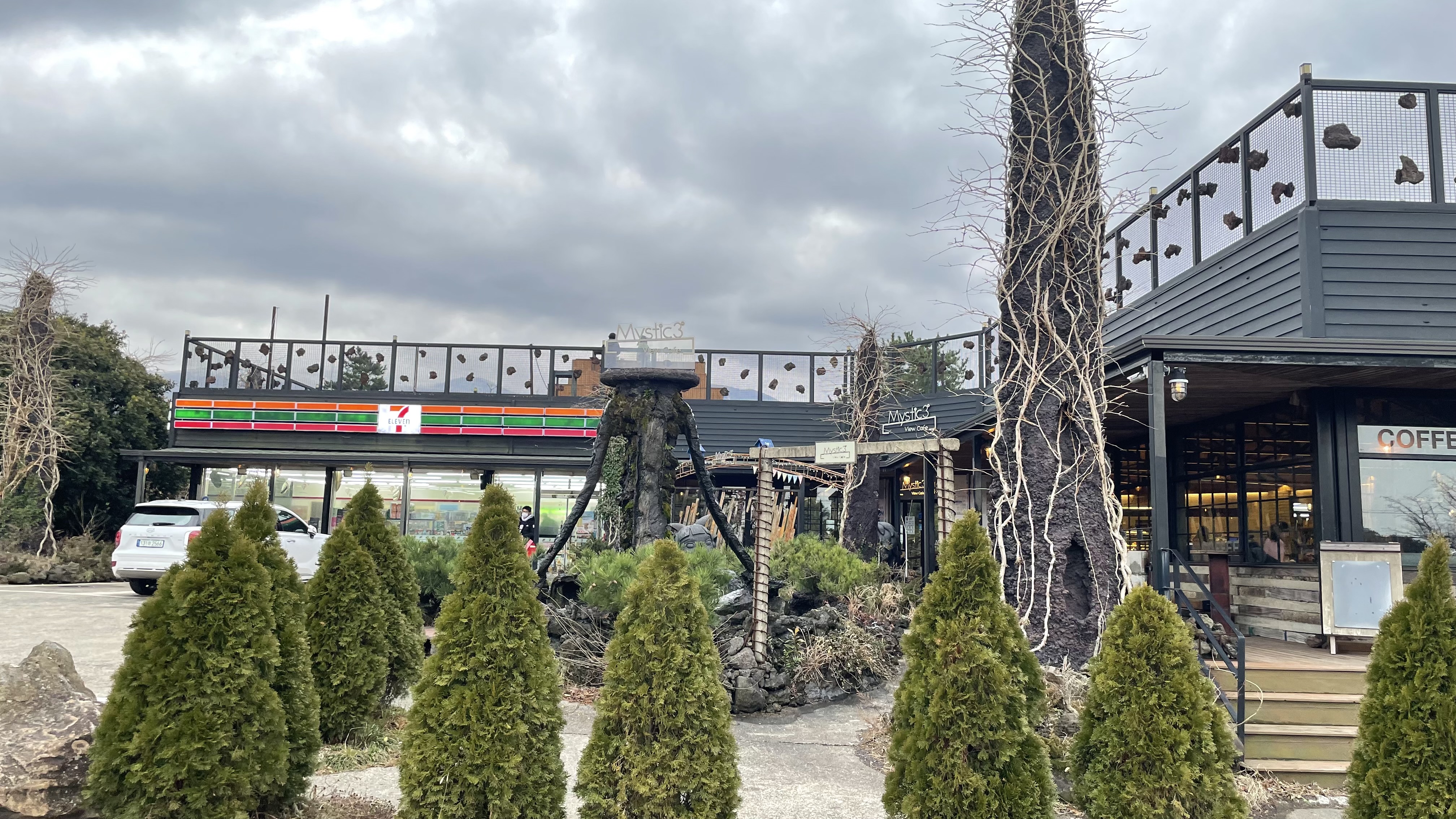 신비의 도로 바로 옆에 편의점과 카페도 있어요. 공용화장실도 이 건물에 있습니다.