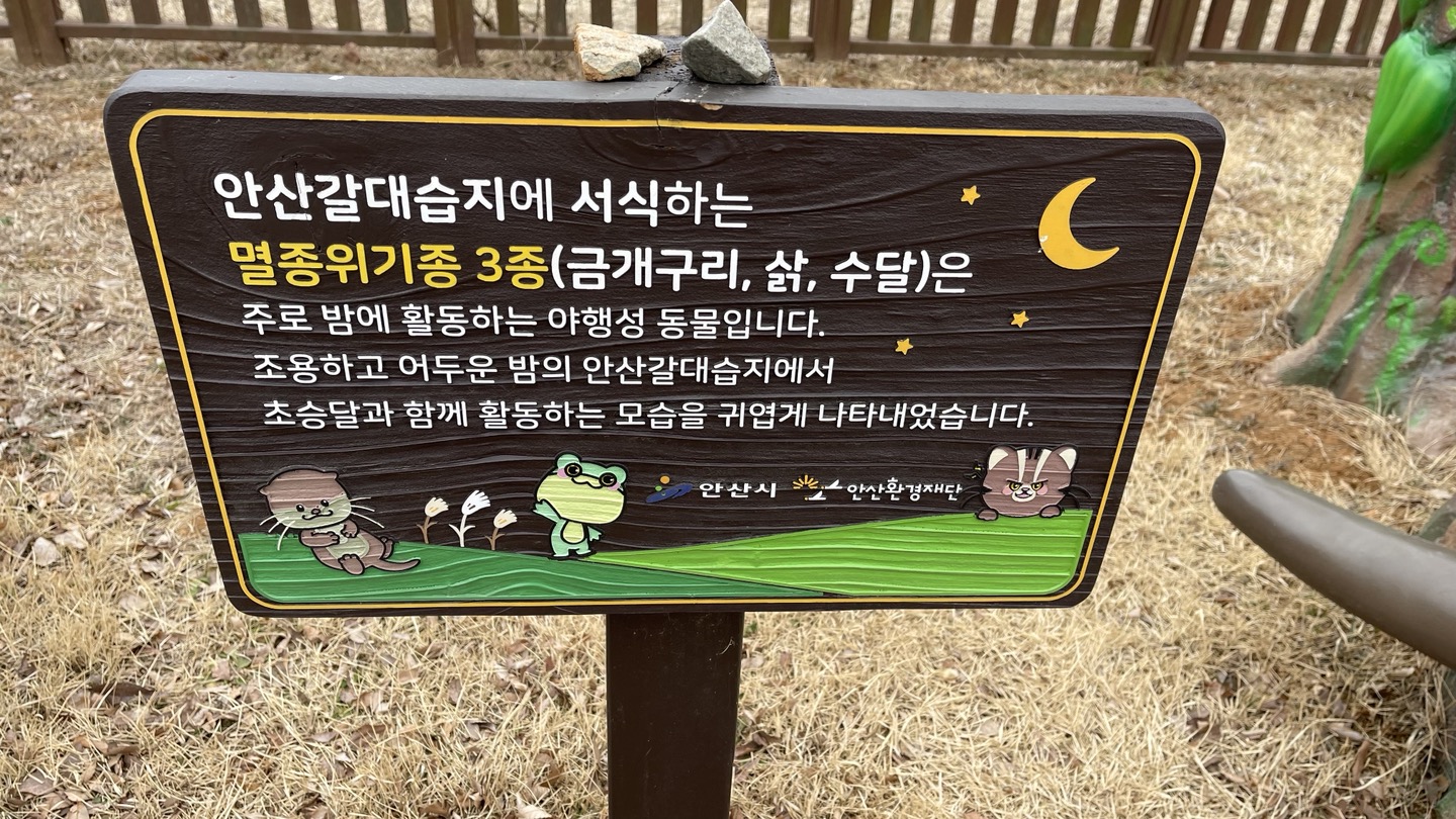 안산갈대습지에는 멸종위기 3종인 금개구리, 삵, 수달이 서식하는 곳이기도 합니다.