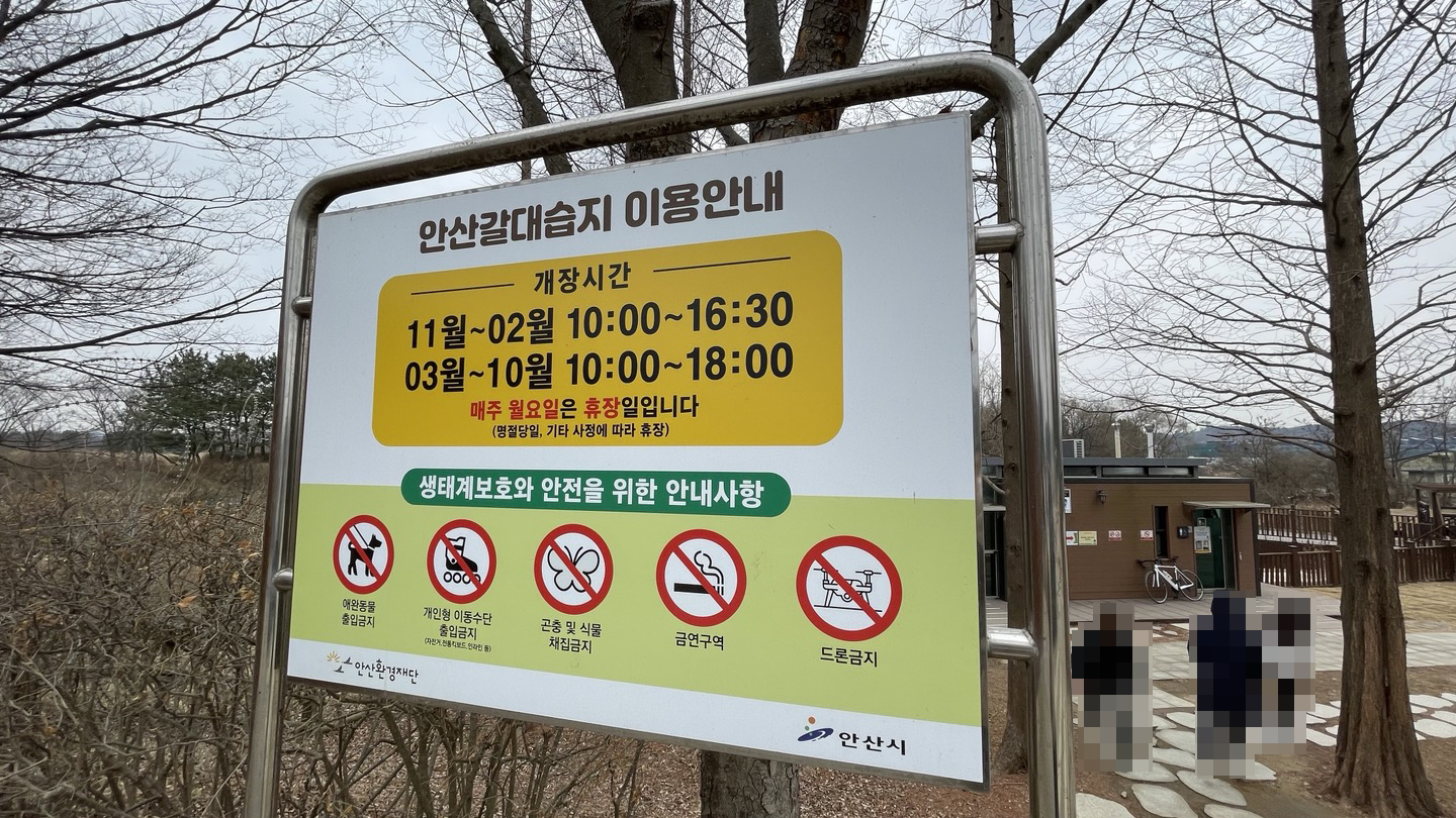 안산갈대습지공원은 자전거나 퀵보드, 드론, 애완동물의 방해없이 조용하고 여유롭게 산책할 수 있는 곳입니다.