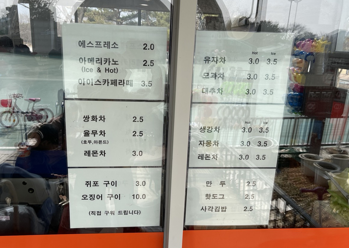 과자, 음료수, 아이스크림 외에도 여러가지 차 종류도 팔고 있네요.