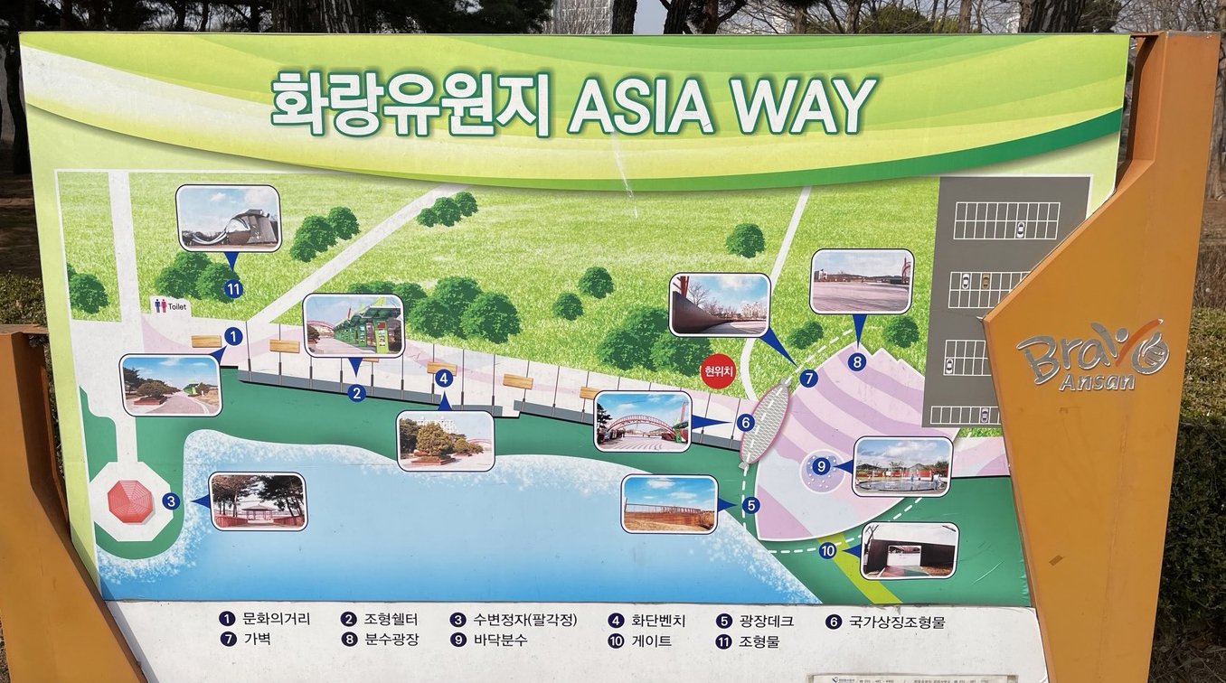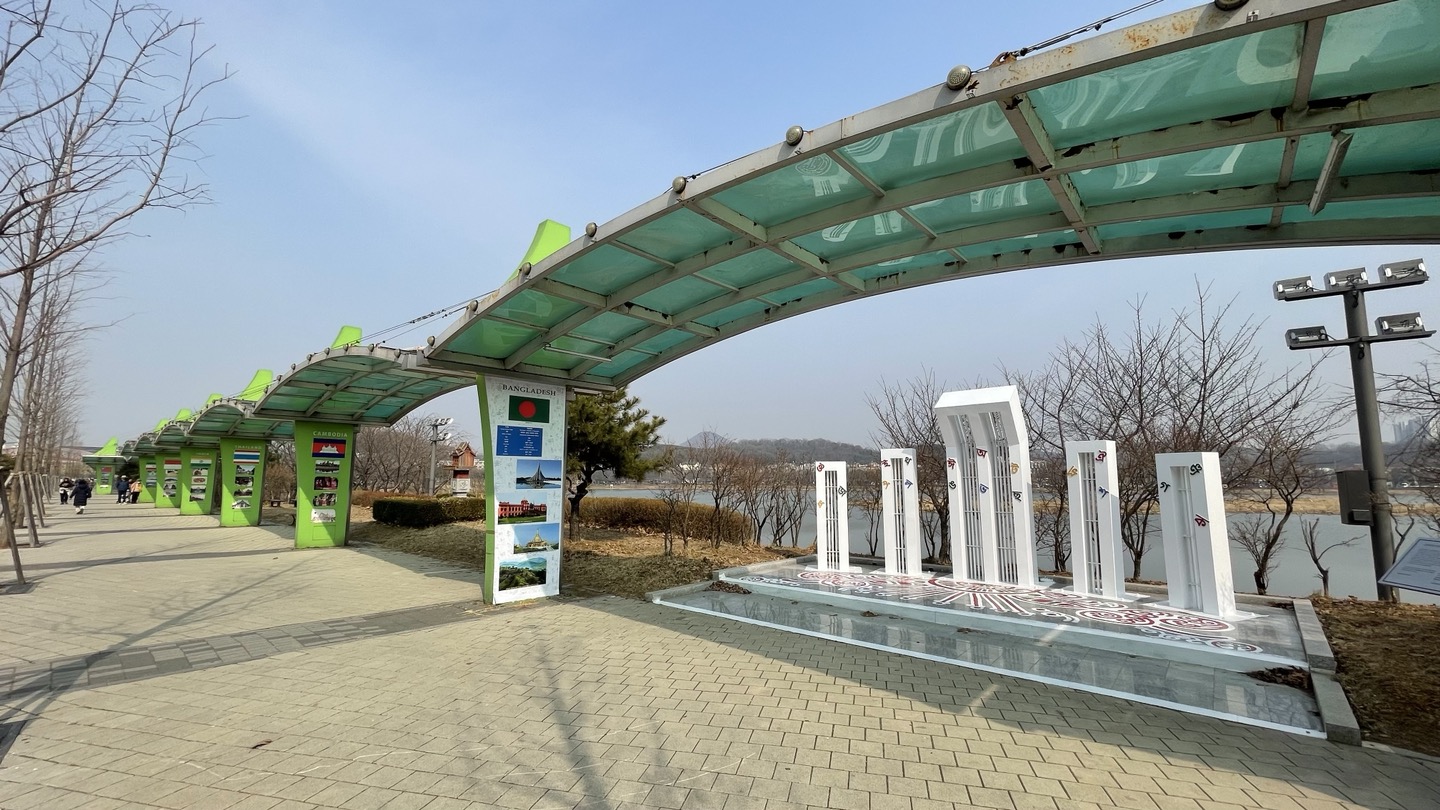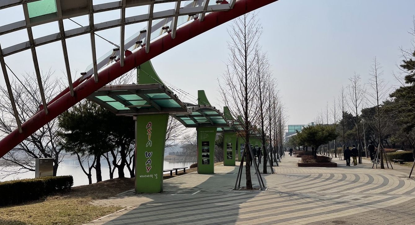 이 곳은 ASIA WAY라는 구간인데요, 아시아 나라들의 문화와 역사를 소개한 조형물이 세워져 있습니다.