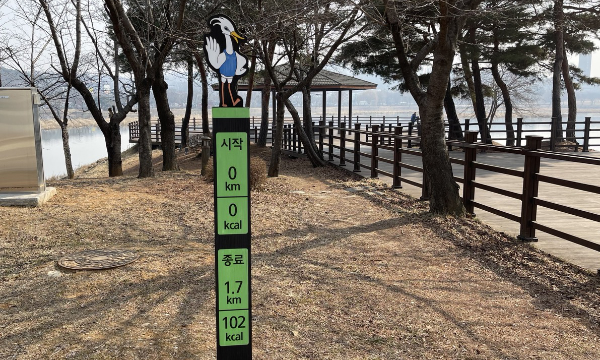 둘레길은 전체길이는 1.7km로, 한 바퀴 돌면 102kcal를 소모할 수 있습니다.ㅎ