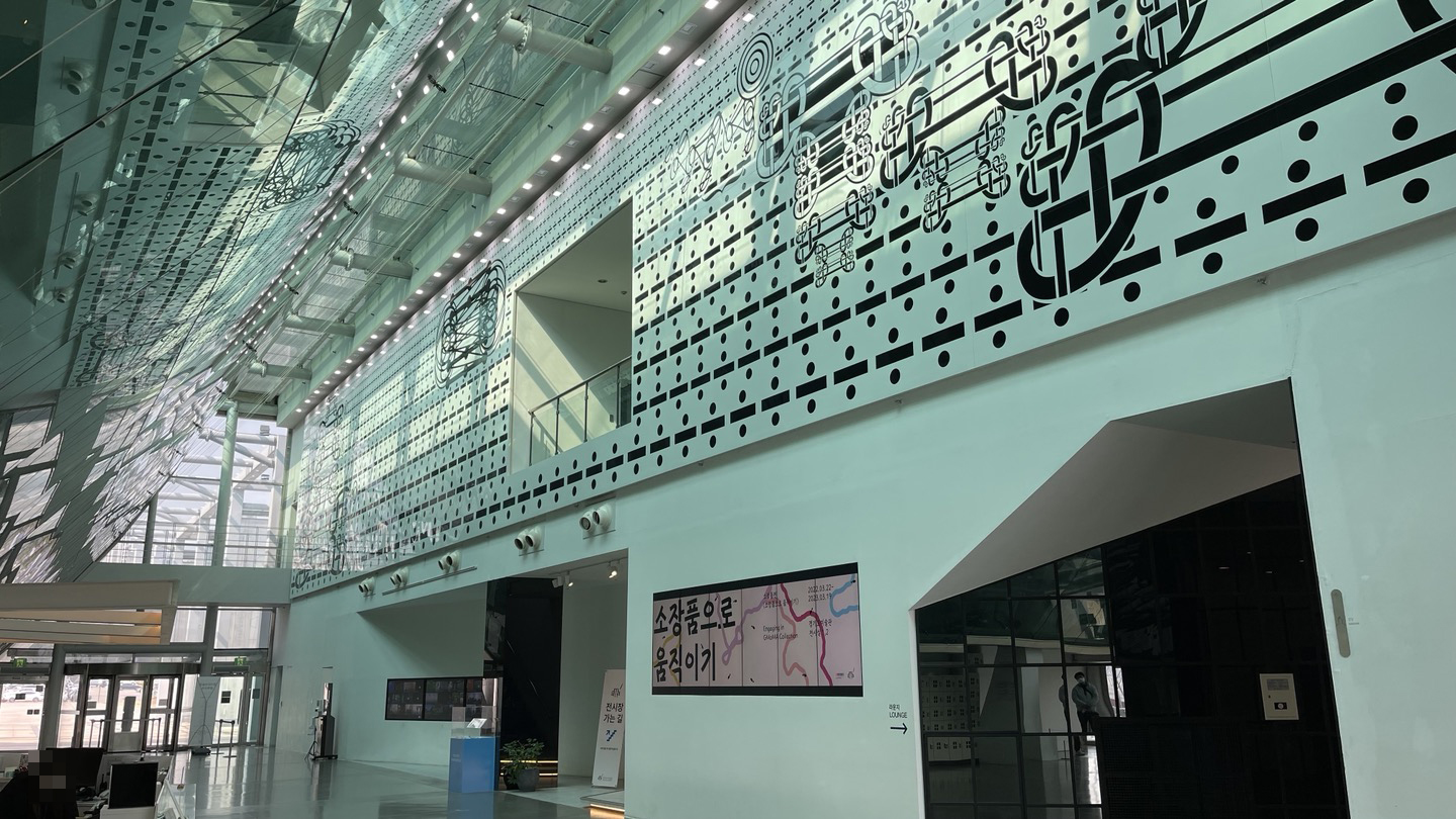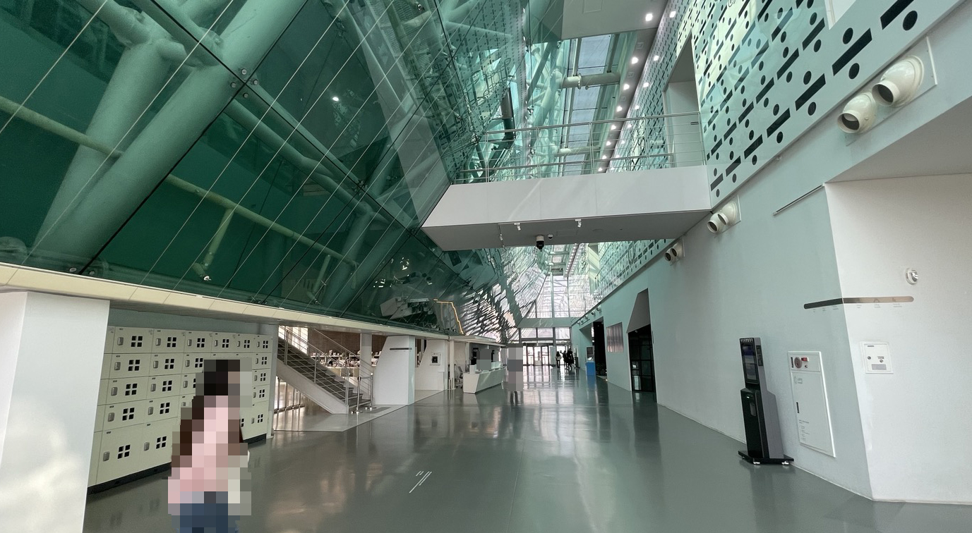 경기도미술관 1층 모습입니다. 안내데스크와 기념품 판매점, 휴식공간, 공작실, 화장실 등등이 있습니다.
