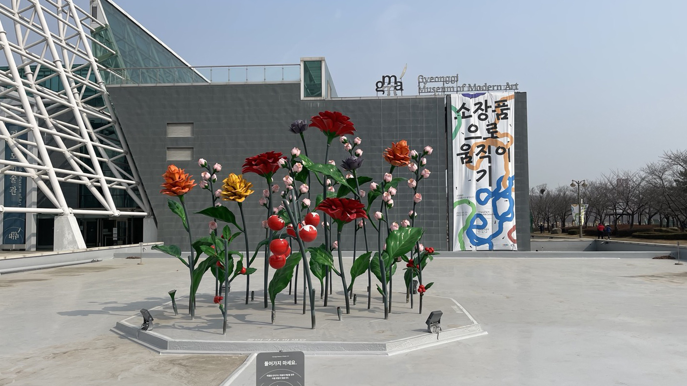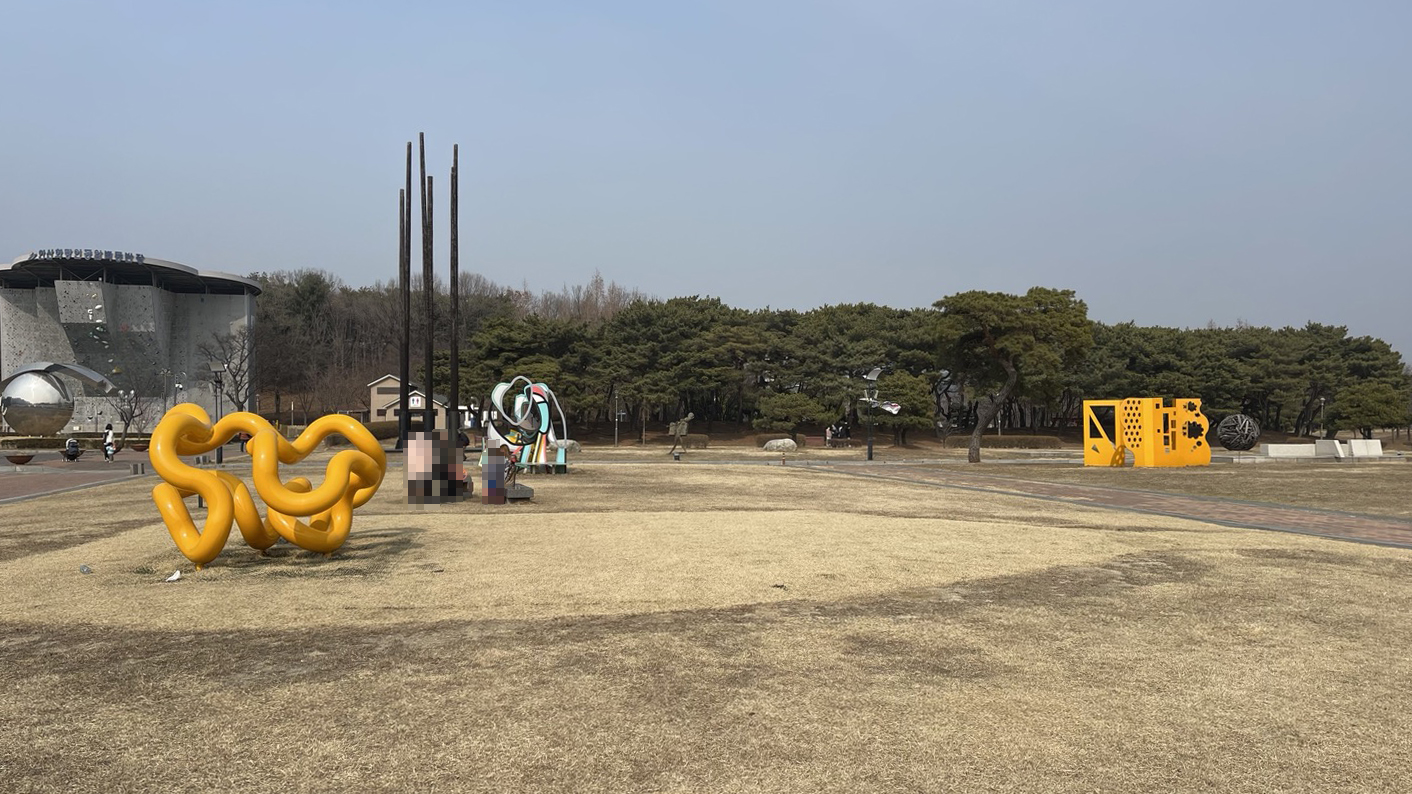 제2주차장과 경기도미술관 사이에 잔디광장이 있습니다. 잔디광장 내에 조형 미술품들이 전시되어 있어서 작품감상도 같이 할 수 있어요. 날씨가 확 풀려서 그런지 아이들과 나들이 나온 가족들이 많이 보였습니다.