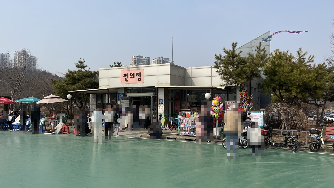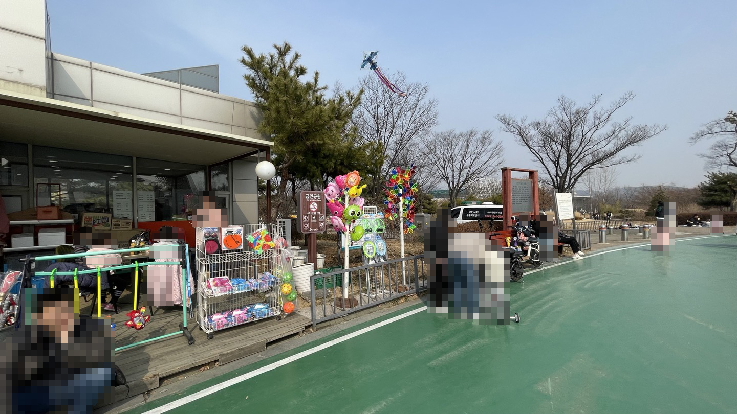 대공연장을 빙 둘러서 인라인장이 있어 아이들 놀기 좋아 보였어요. 편의점에서 인라인과 킥보드 대여도 해주고 있습니다.