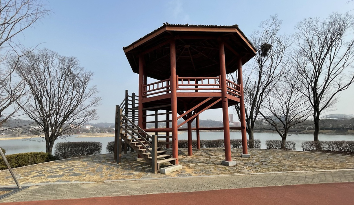 둘레길 중간 중간 정자가 있어요. 올라가니 유원지 주변이 한눈에 보이네요.