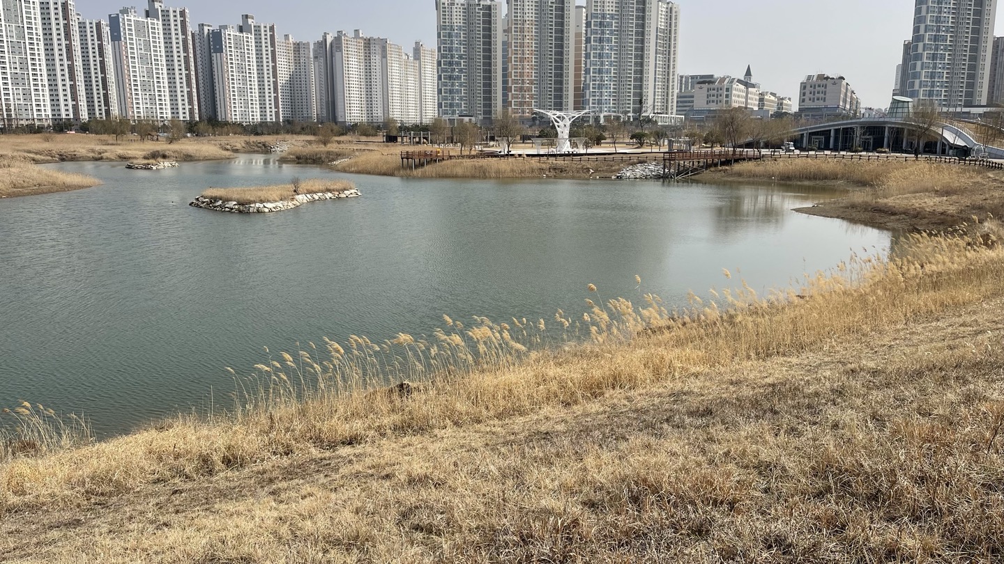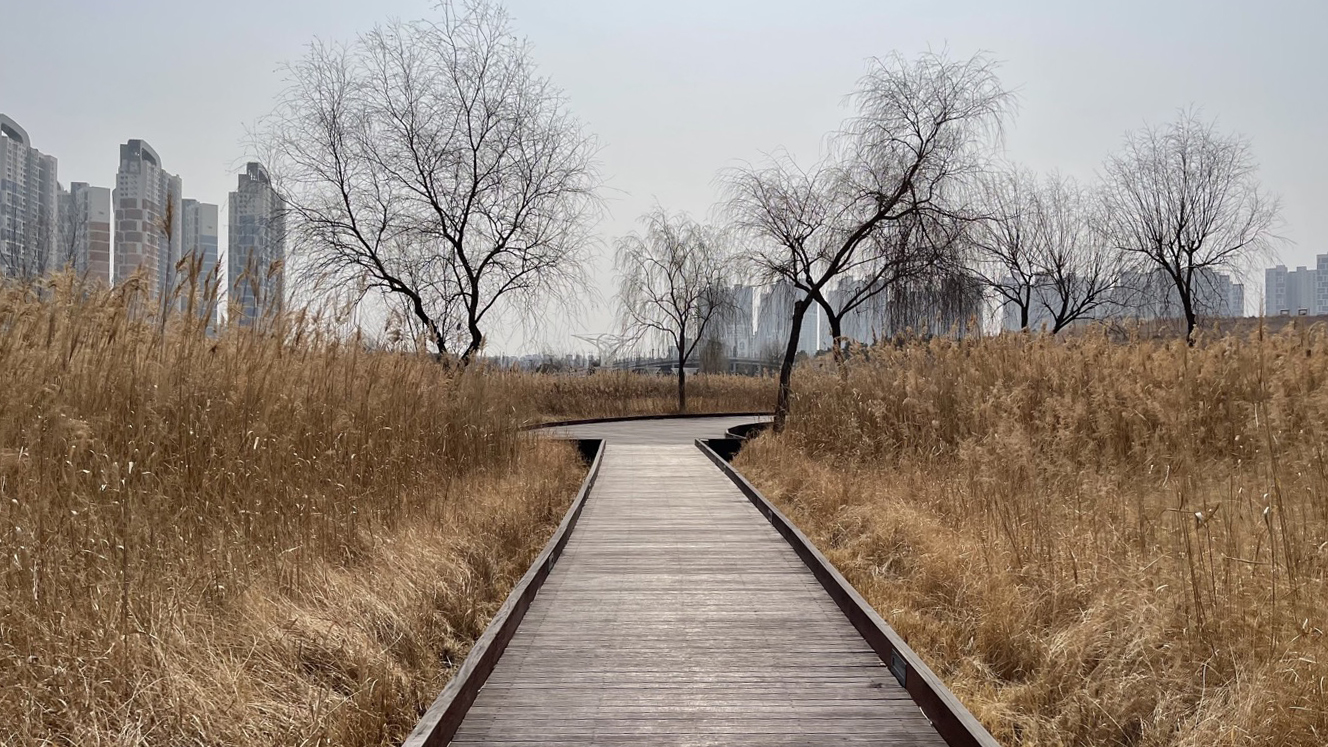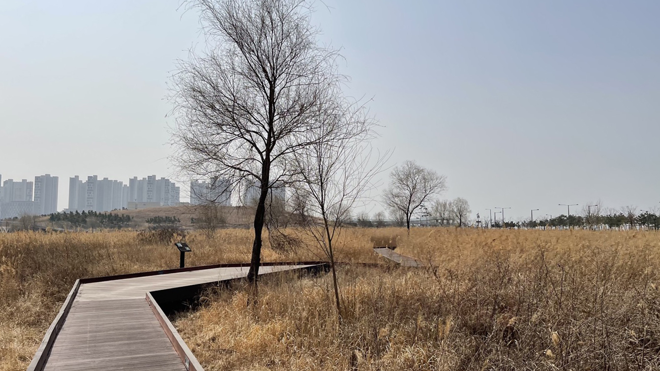 아파트 단지를 따라 걷다보면 넓은 갈대밭이 보이는데요. 이 곳 나무데크길을 따라 가면 배곧생명공원까지 갈 수 있습니다.