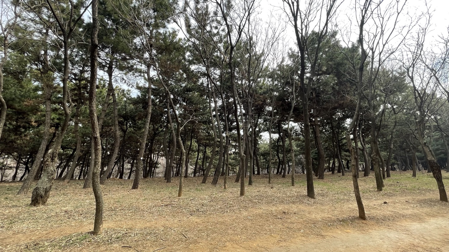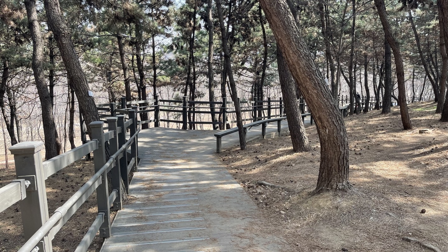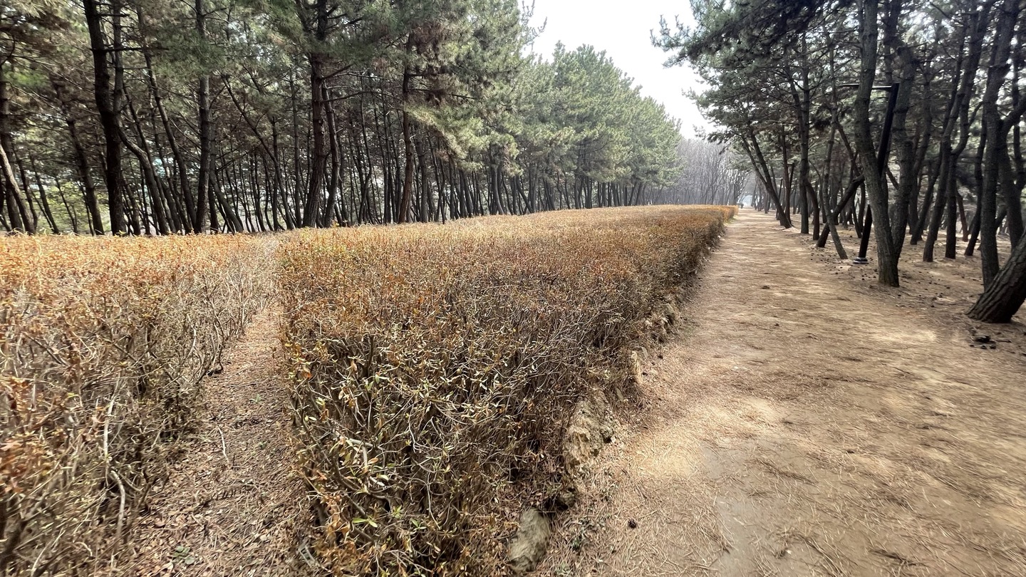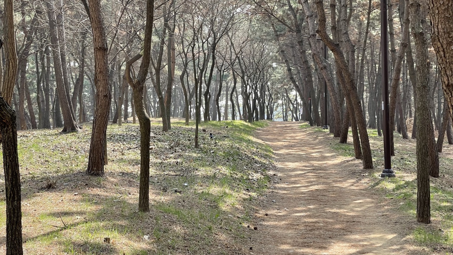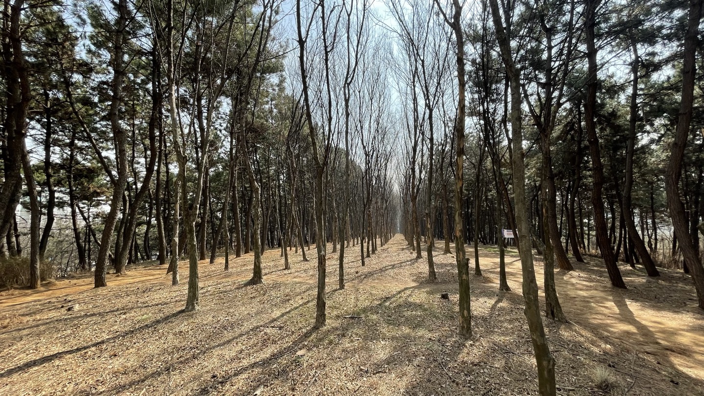 전체적으로 소나무가 빽빽히 심어져 있고 가운데에 산책로를 조성해 놓았습니다.