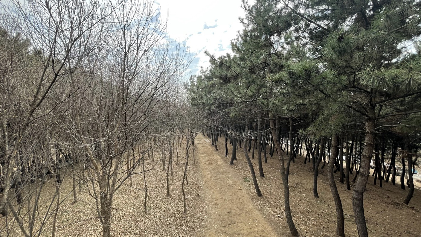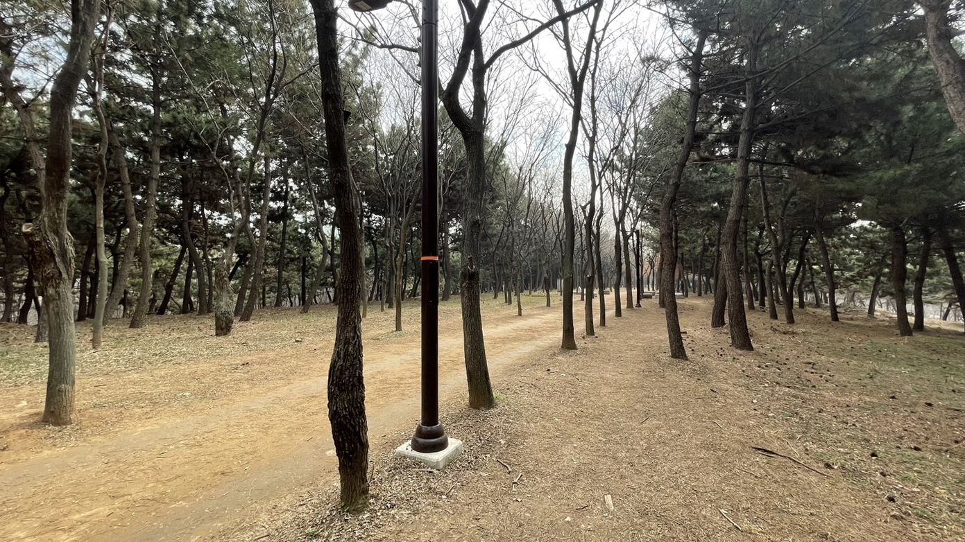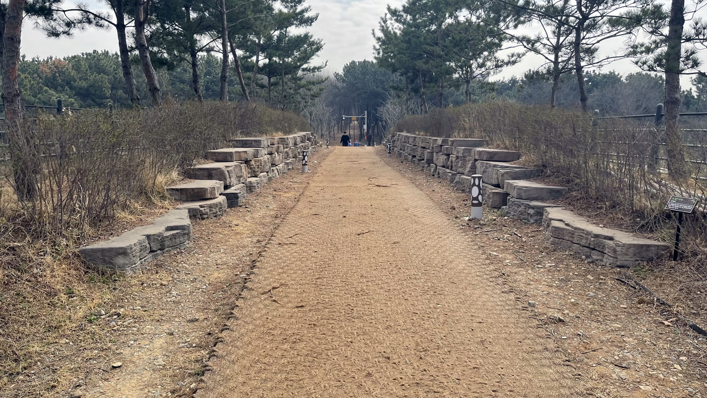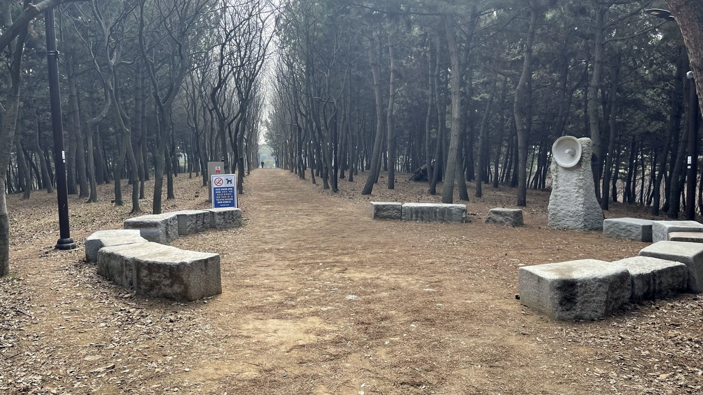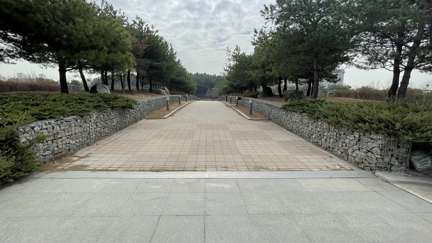 전체적으로 소나무가 빽빽히 심어져 있고 가운데에 산책로를 조성해 놓았습니다.