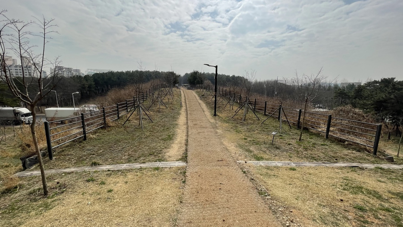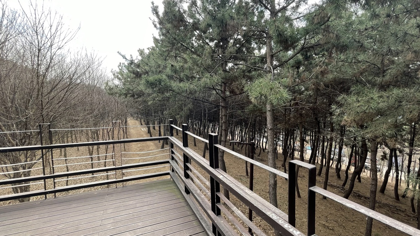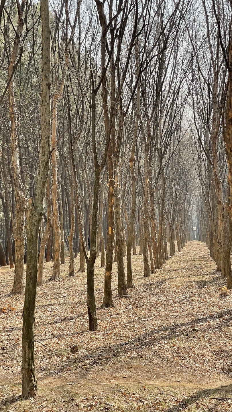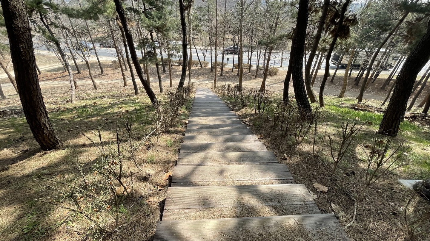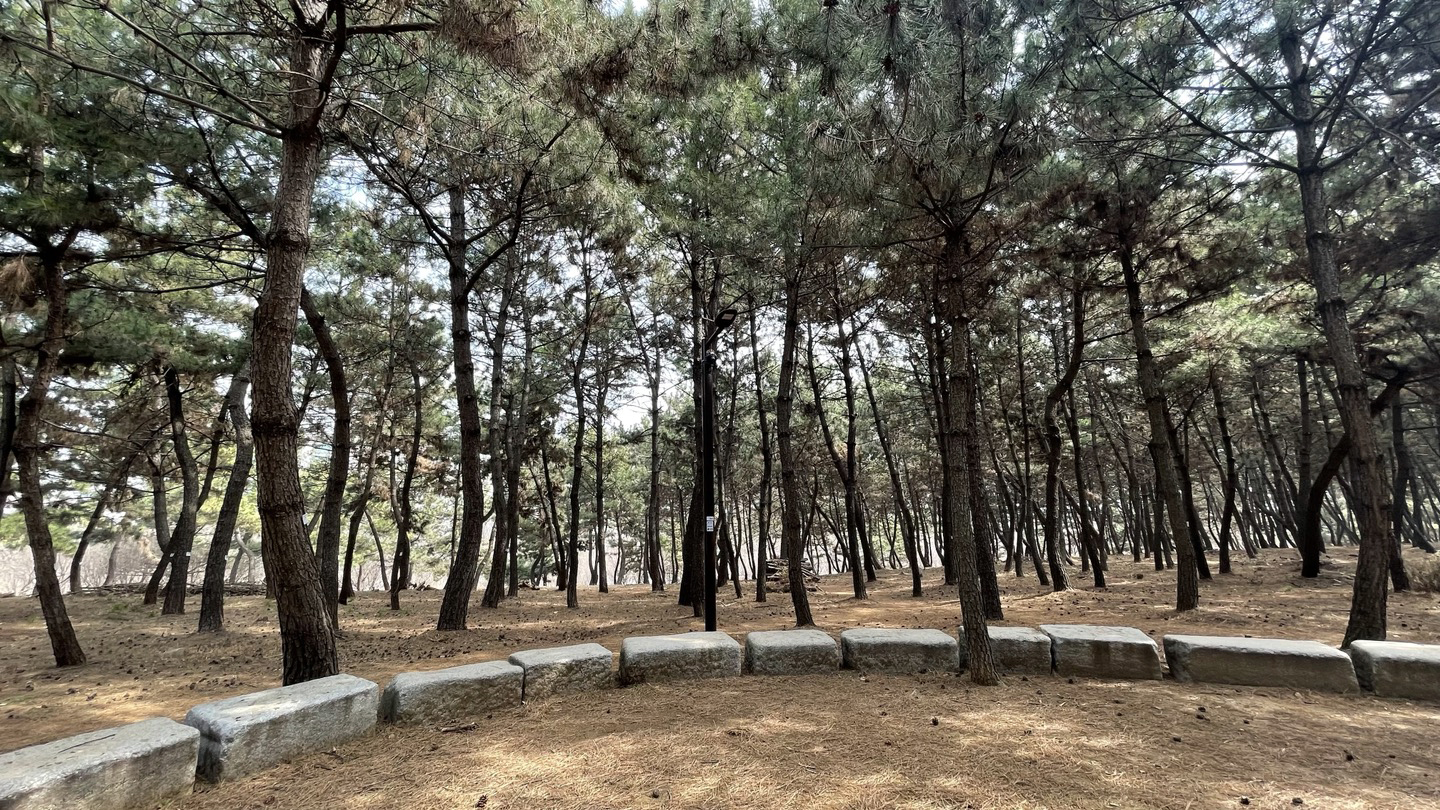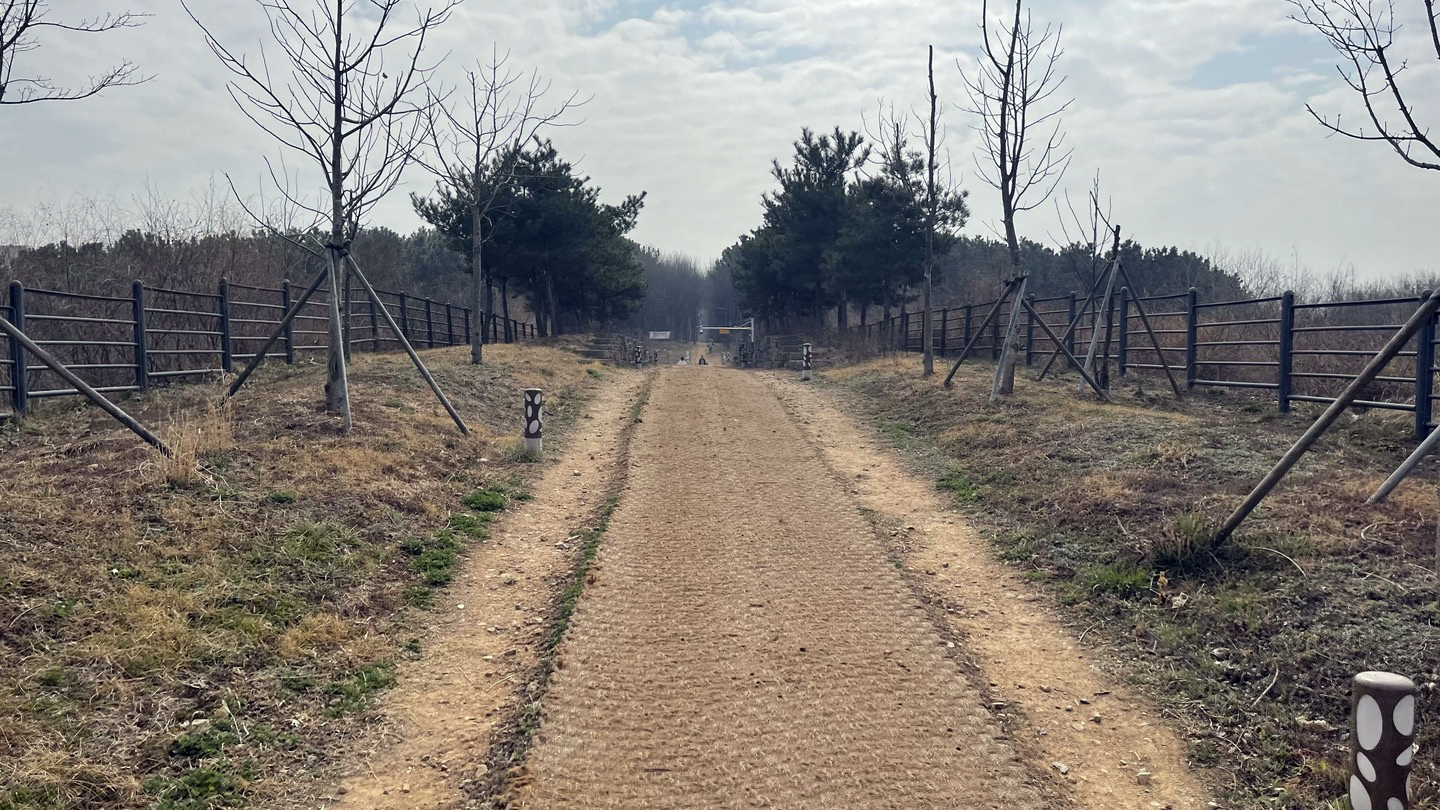 전체적으로 소나무가 빽빽히 심어져 있고 가운데에 산책로를 조성해 놓았습니다.