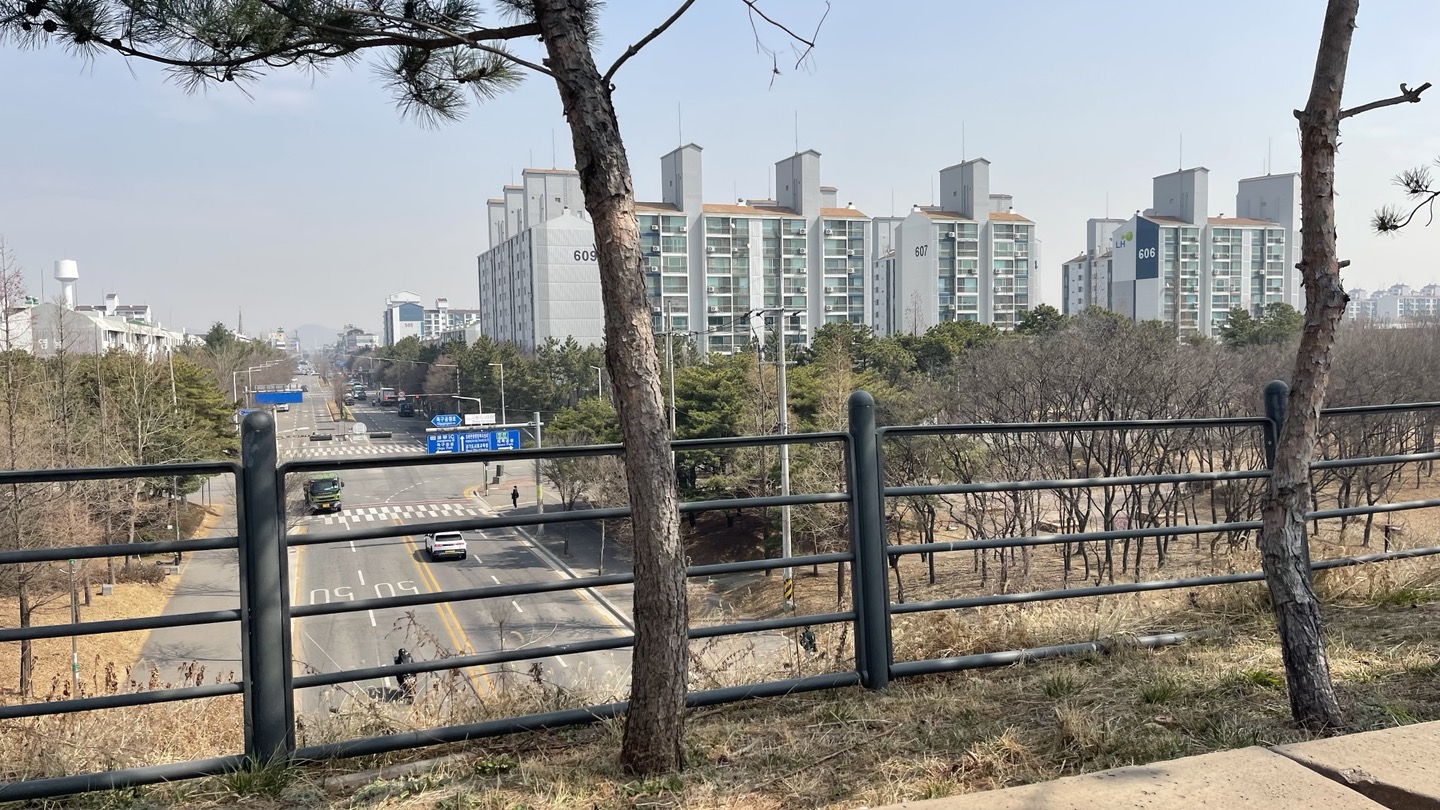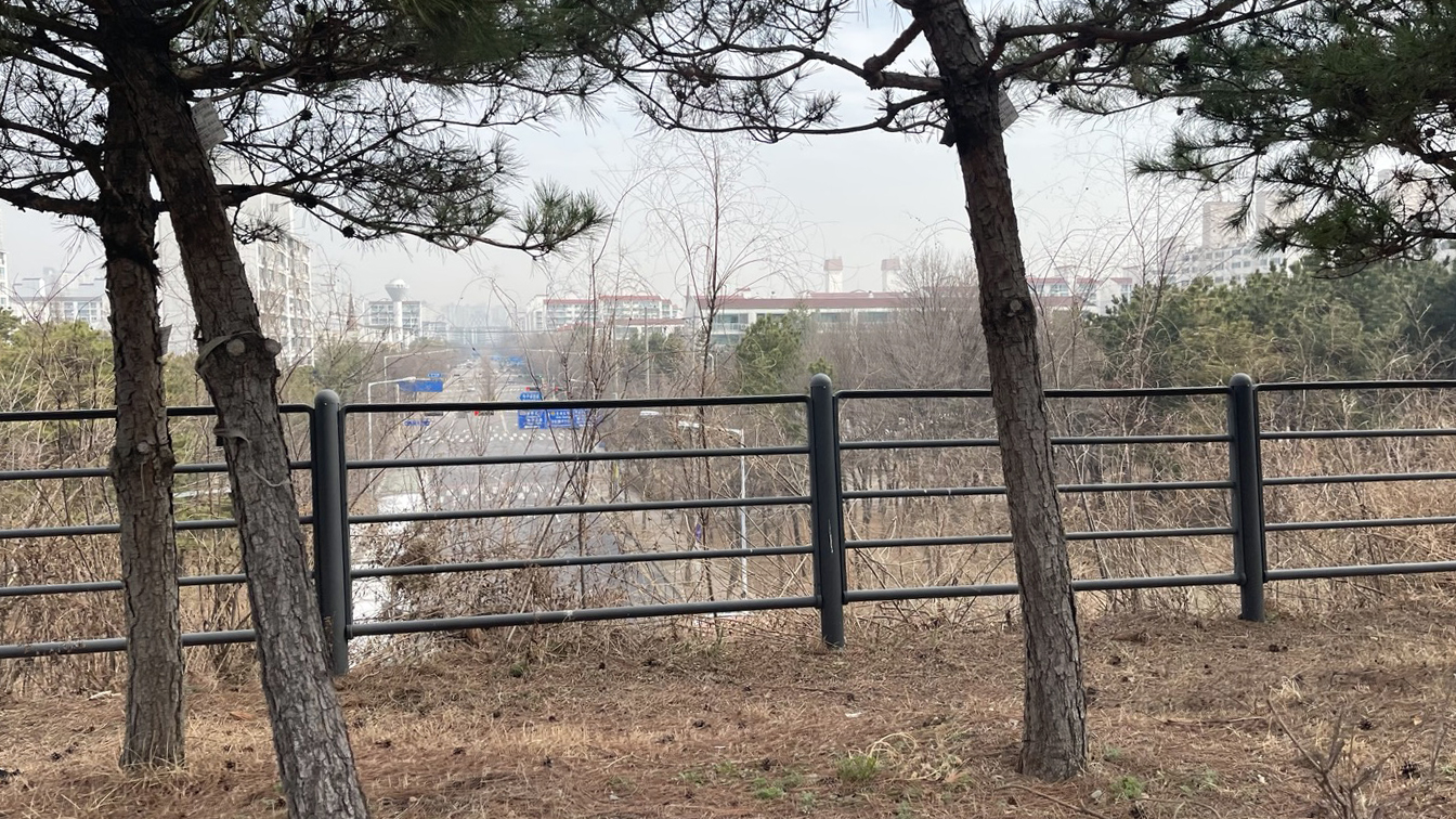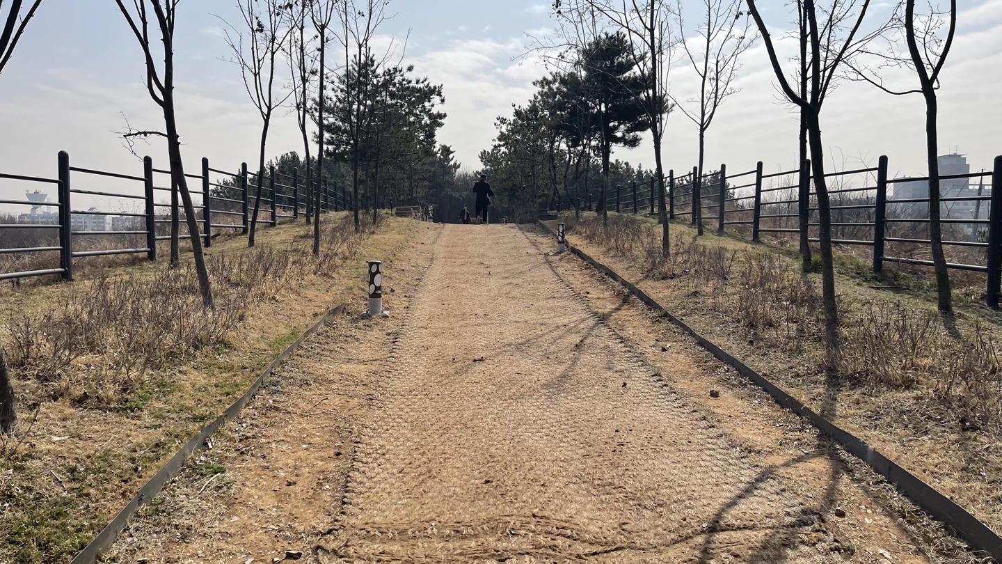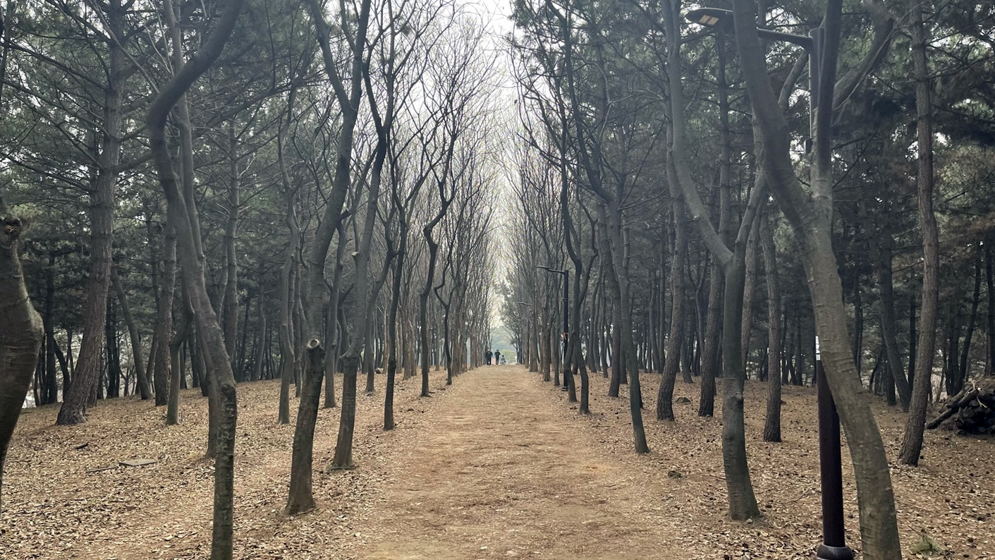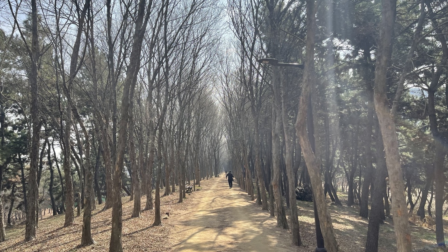 전체적으로 소나무가 빽빽히 심어져 있고 가운데에 산책로를 조성해 놓았습니다.