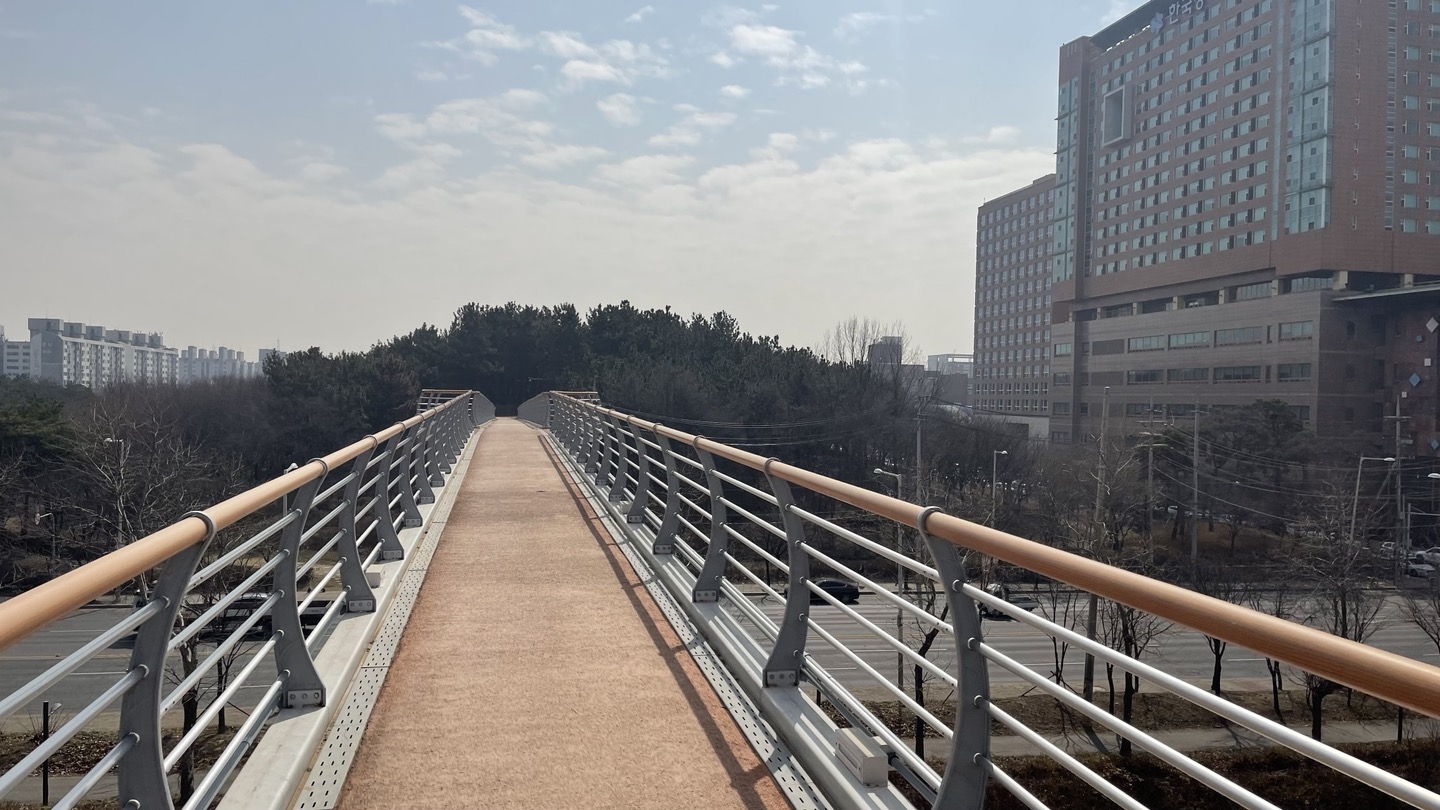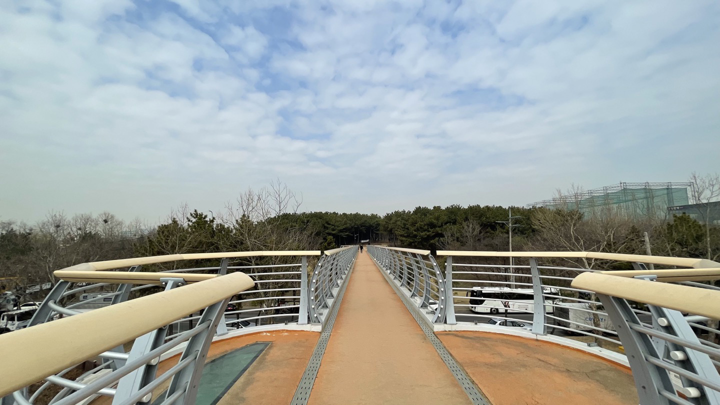 차도 위의 보행교 양쪽으로 나무가 심어져 있어 일반적인 육교와는 전혀 다른 느낌이에요.