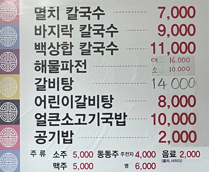 처음엔 근처 다른 칼국수집에 먼저 갔었는데요, 그 집은 들어서는 순간 비린내가 너무 심해서 인상이 써질 정도였어요. 해물칼국수집이니 그려려니 하고 일단 들어갔다가 원하는 메뉴의 주문이 어렵다고 해서 그냥 나왔거든요.