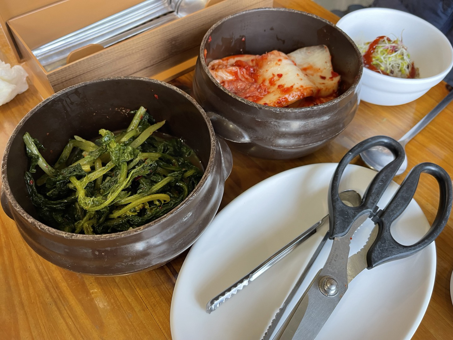 밑반찬으로 열무김치와 배추김치가 나옵니다.