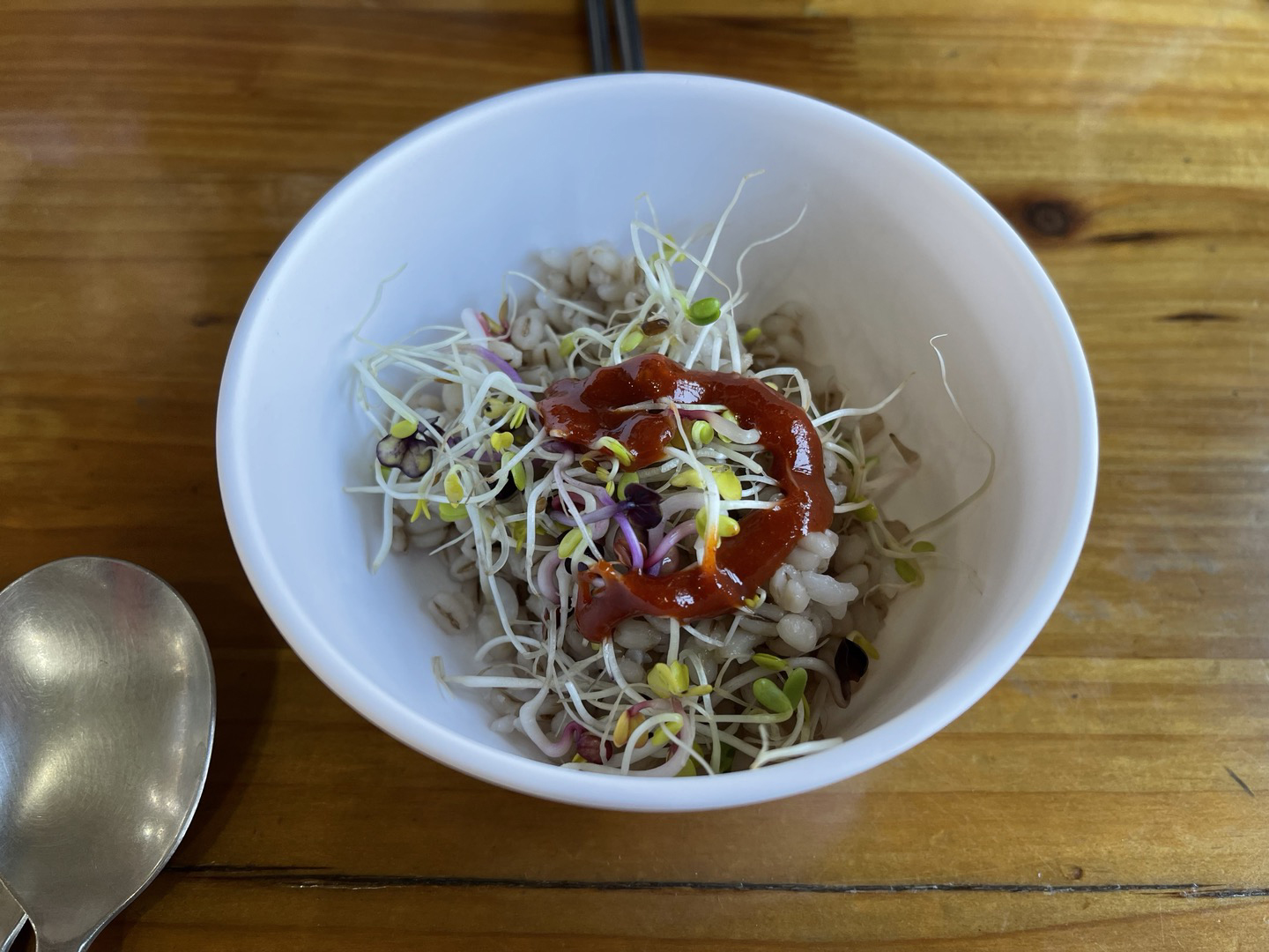 새싹샐러드가 얹어진 보리밥도 조금씩 나와요.
