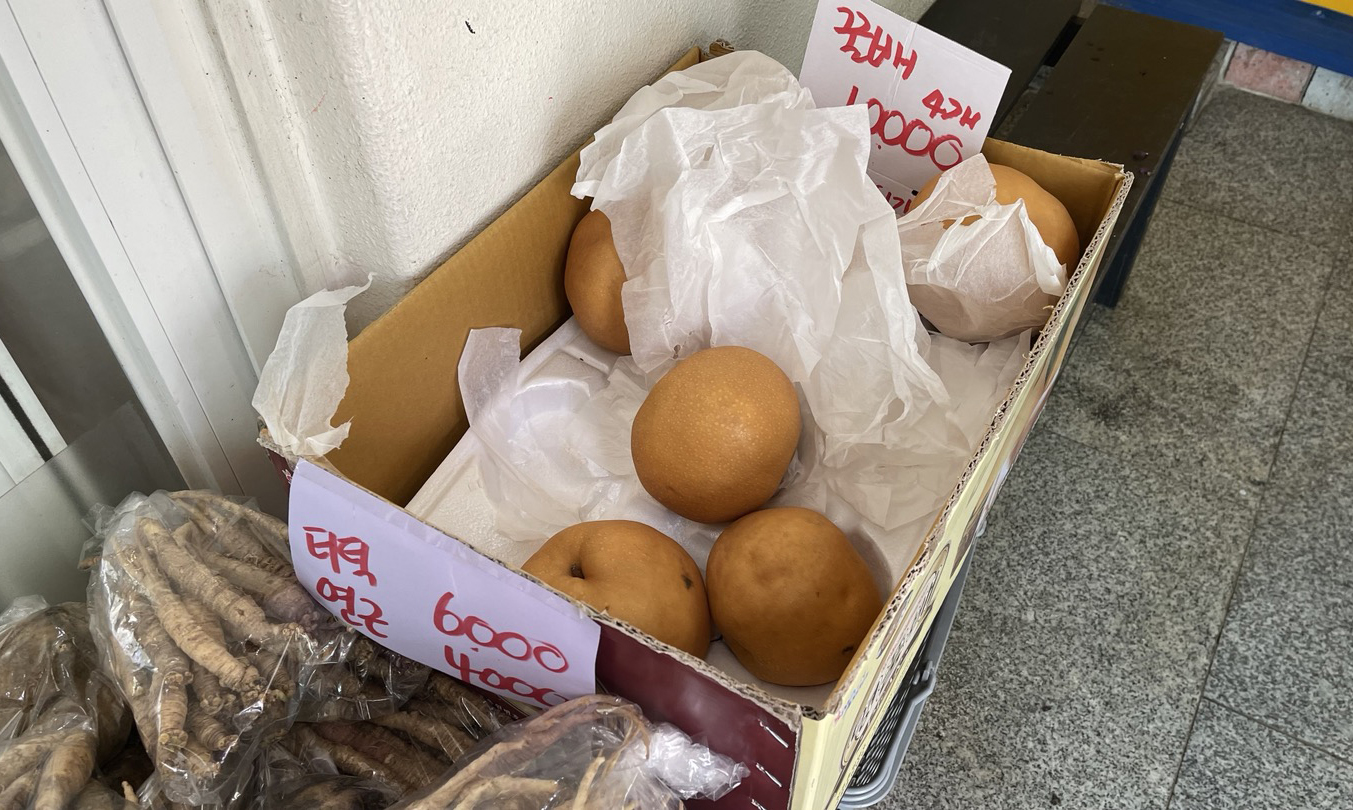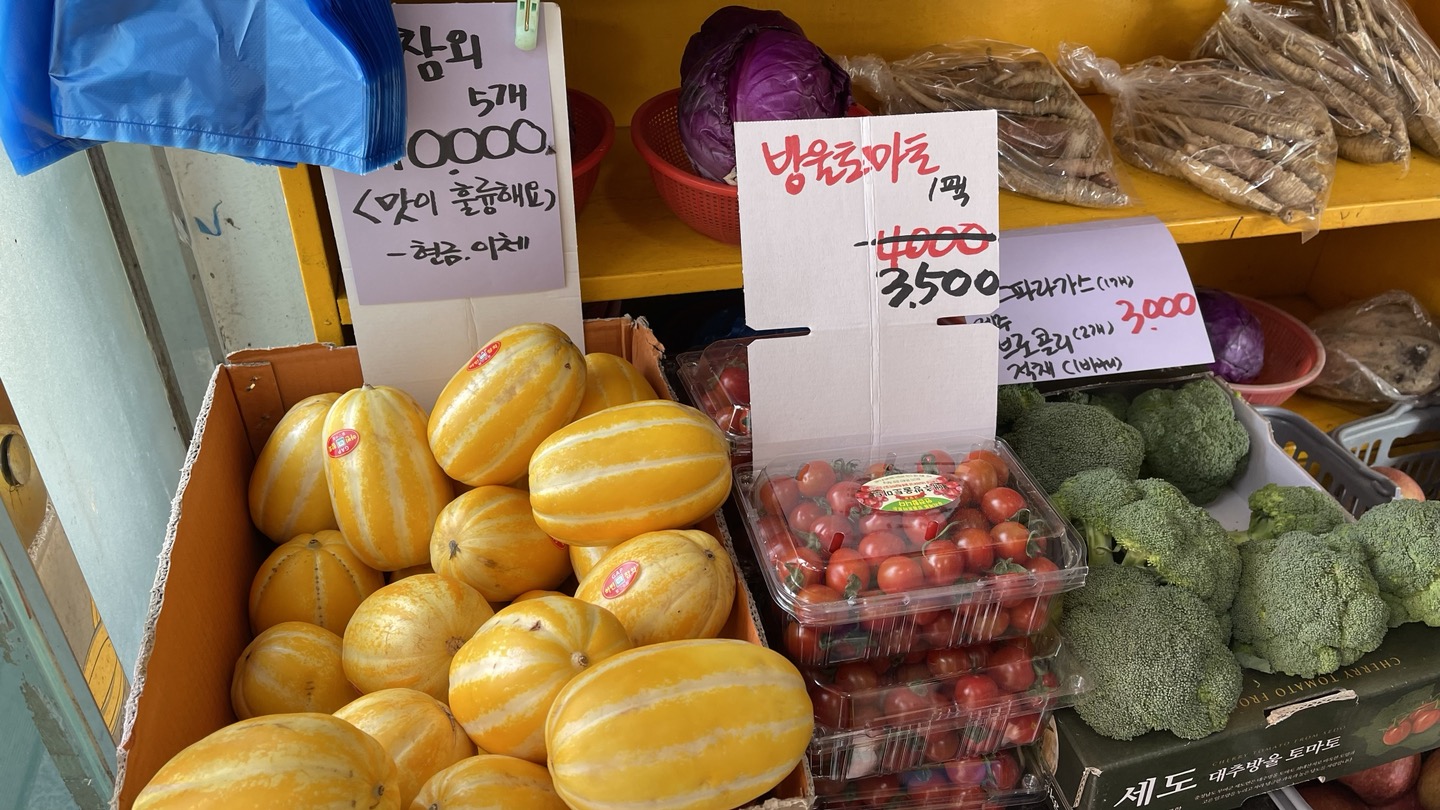 참외와 배가 크기도 크고 좋아보여서 1만원 어치씩 사왔는데요, 맛도 좋아서 좀 더 사올껄 하고 후회했답니다.(과일과 채소는 현금결제만 가능해요.)