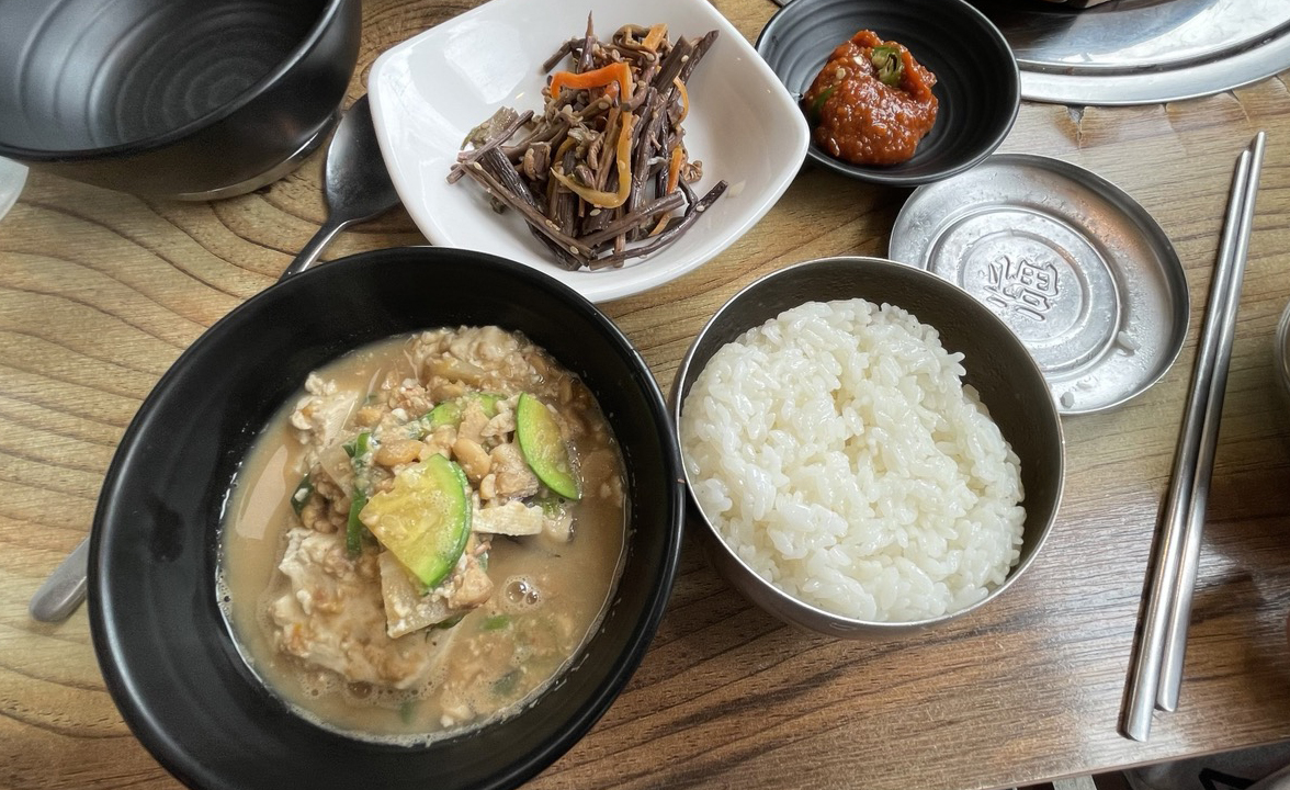 냄새 많이 나지 않고 두부도 잔뜩 들어있는 구수한 맛의 청국장이에요.