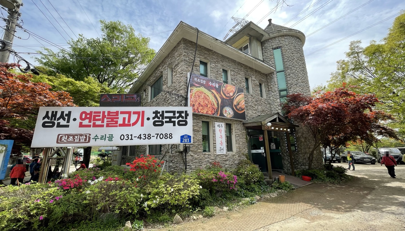 수리골 외관 모습입니다. 건물 뒤쪽으로 주차장이 있어요.