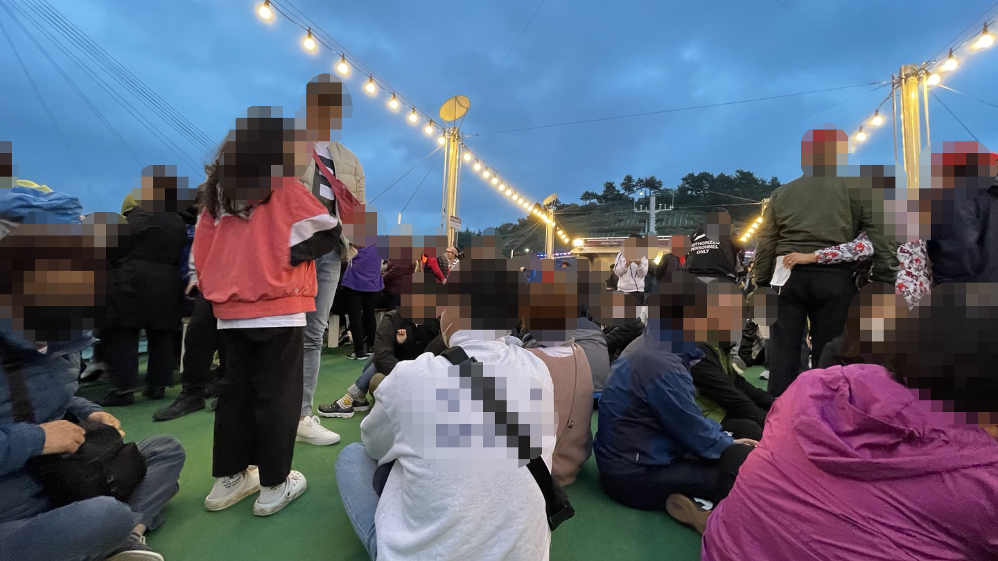 어쨌든 다시 내릴 수도 없어서 저희 가족도 한군데 자리를 잡고 30분 정도 여수밤바다 관람을 했습니다. 근데 사람들 머리에 가려 풍경감상도 쉽지 않더라고요ㅜㅜ