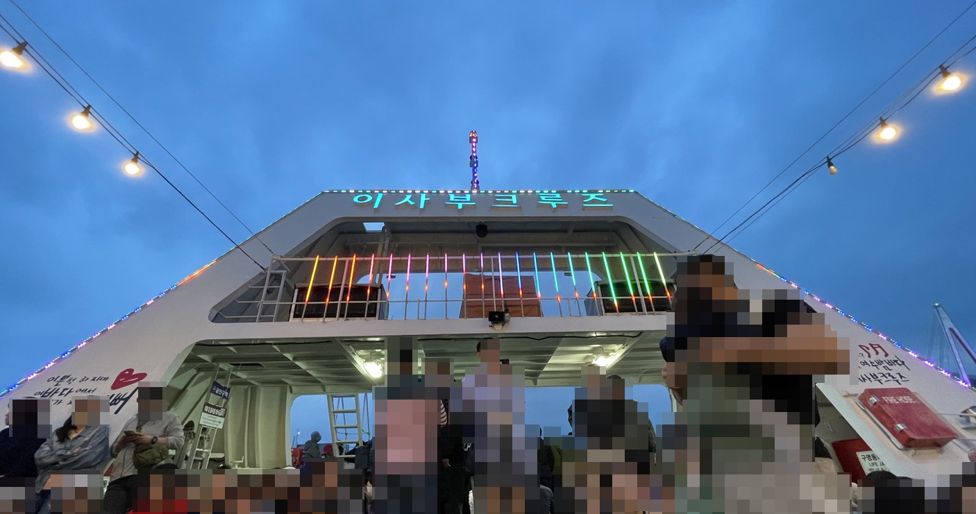 이사부크루즈에 탑승했는데, 사람들이 모두 3층으로만 올라가는거에요. 어... 뭐지....인파에 휩쓸려 뭣모르고 3층으로 올라갔습니다. 나중에 알고보니 불꽃쇼 관람을 위해 미리 자리를 잡기 위해 다들 3층으로 올라가는 것이더라고요.