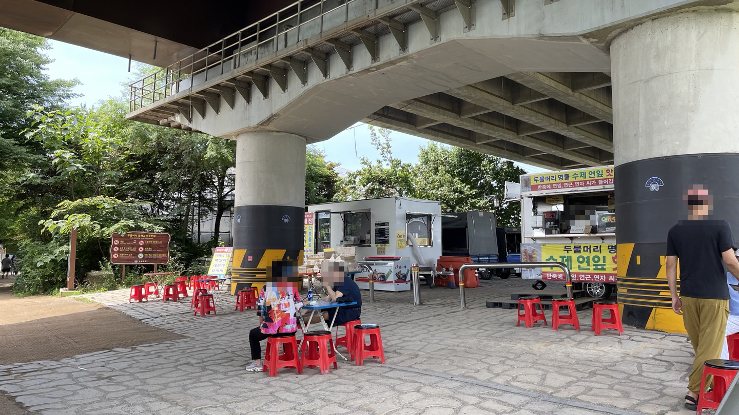 주차장과 산책로가 맞닿는 곳에는 푸드트럭들이 있습니다.