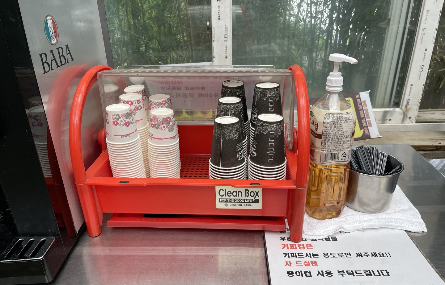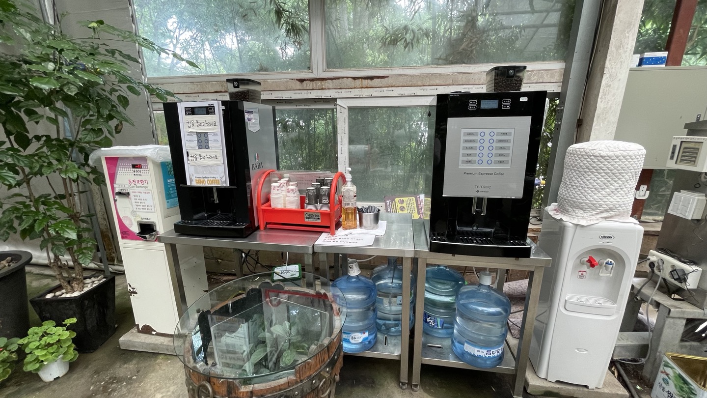식물원 입구쪽에 커피머신이 2대 있어요.
