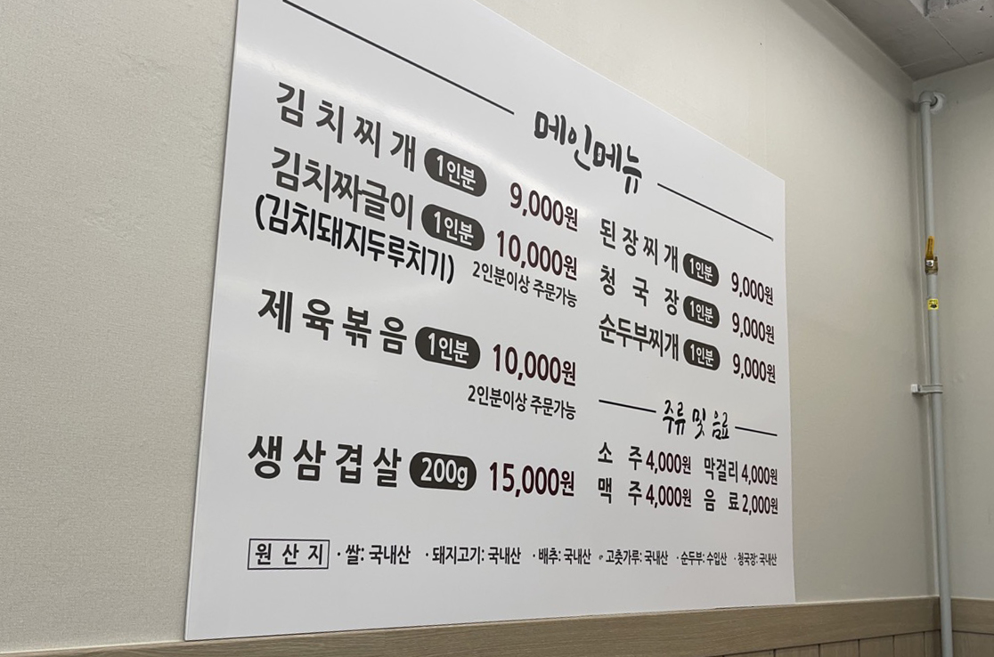 김치찌개, 생삽겹살 전문점 '고향집' 모습입니다.