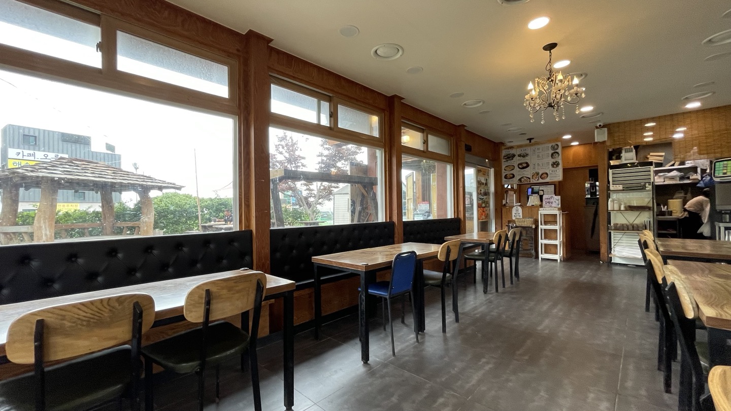 깔끔합니다. 어느 자리에 앉아도 외부를 볼 수 있게 테이블이 배치되어 있어 더 좋은 것 같아요. 테이블 간격도 괜찮고요.
